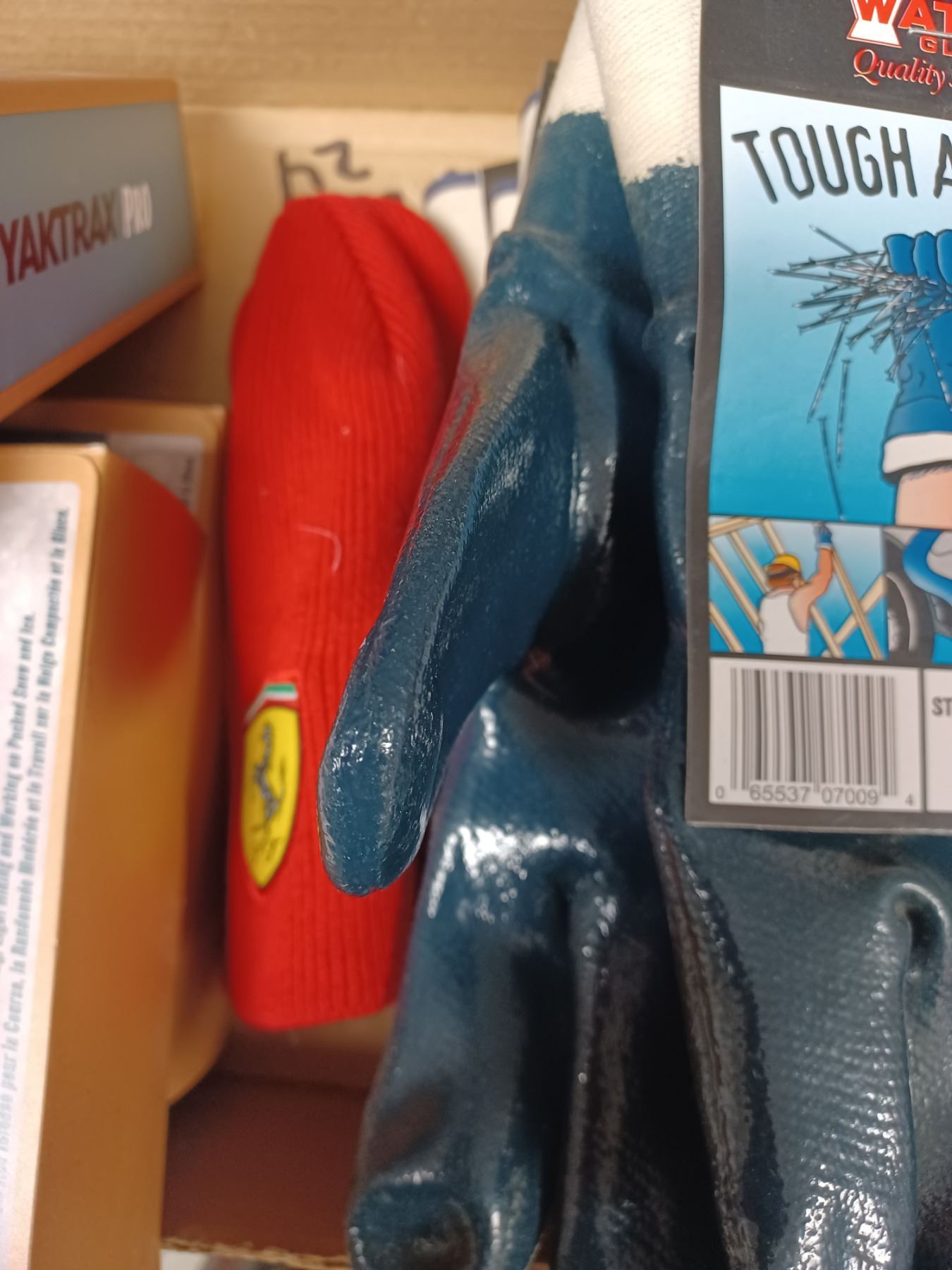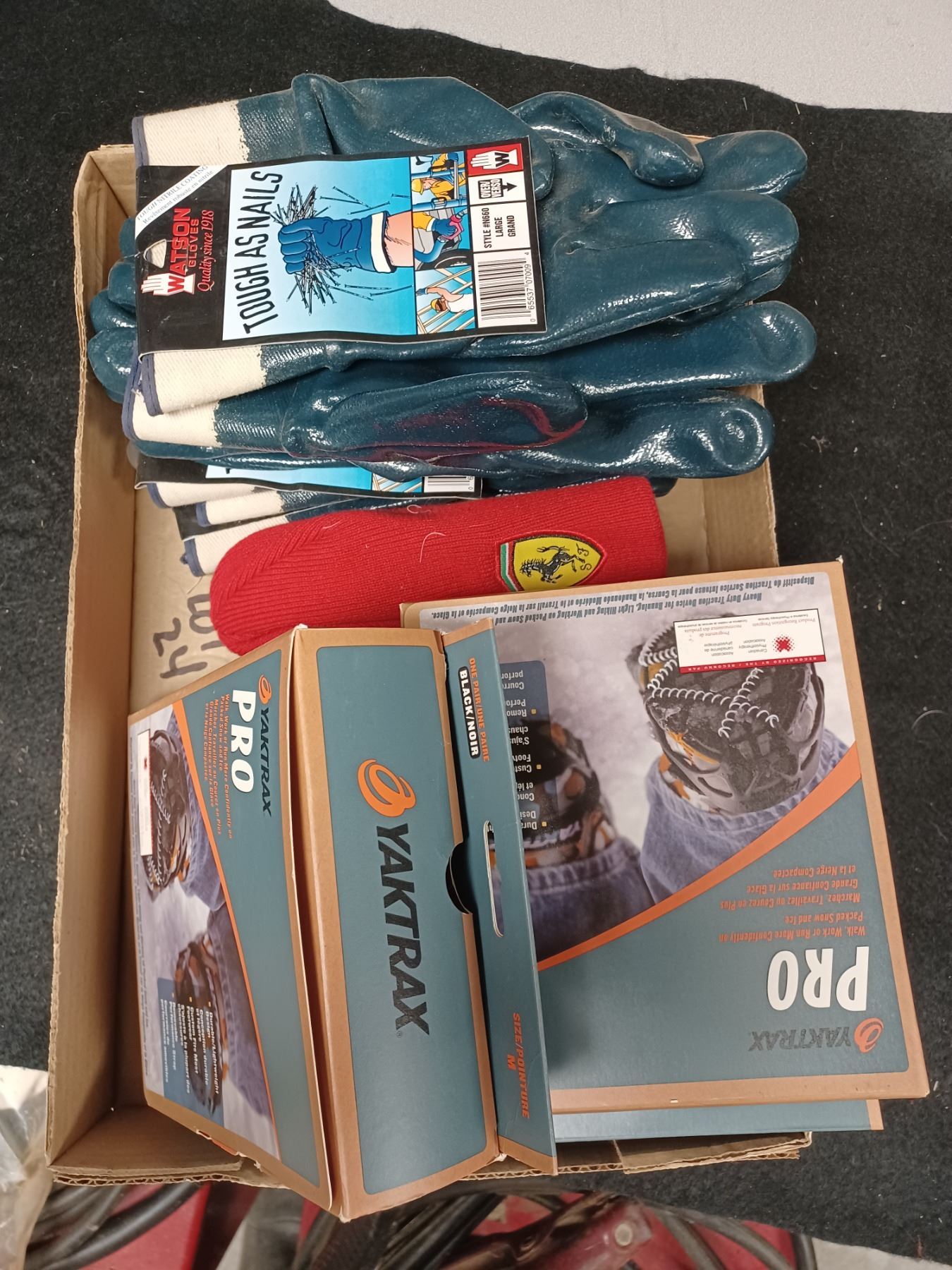 NEW WEATHER PROOF GLOVES (4 LARGE PAIRS) PLUS THREE YAKTRAX BOOT CLEATS