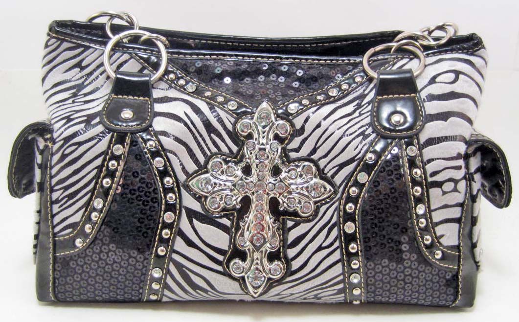 CONCEALED WEAPON PURSE!! With Rhinestones & Sequins. Approx. 13" x 5" x 8"