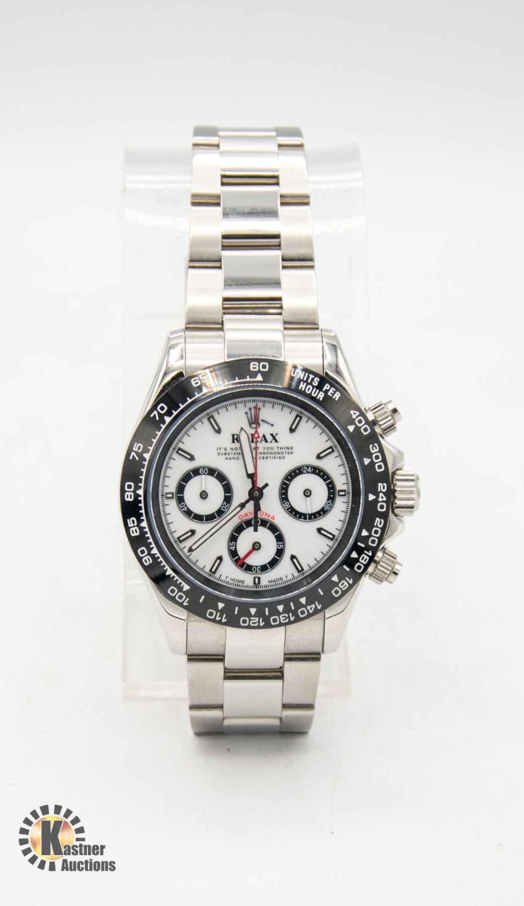STAINLESS STEEL, SCREW DOWN CROWN AND PUSHERS, MICRO ADJUSTMENT CLASP, QUARTZ MOVEMENT NEW BATTERY - *SPELLED RELAX* **ALL ITEMS MUST BE REMOVED BY 5PM SATURDAY, APRIL 20TH 2024. ALL REMAINING ITEMS WILL BE SUBJECT TO A $6.00 PER DAY STORAGE CHARGE. ANY ITEMS REMAINING AFTER MONDAY, MAY 13TH 2024 WILL BE CONSIDERED FORFEITED. NO REFUNDS WILL BE ISSUED FOR FORFEITED ITEMS. TO SCHEDULE A PICK UP APPOINTMENT CLICK HERE