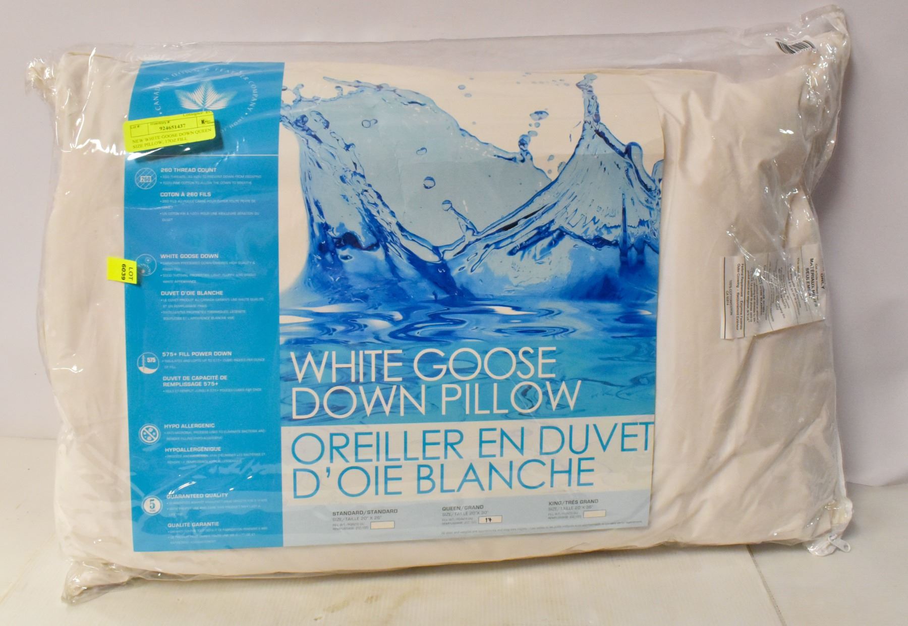 NEW WHITE GOOSE DOWN QUEEN SIZE PILLOW, 17OZ FILL