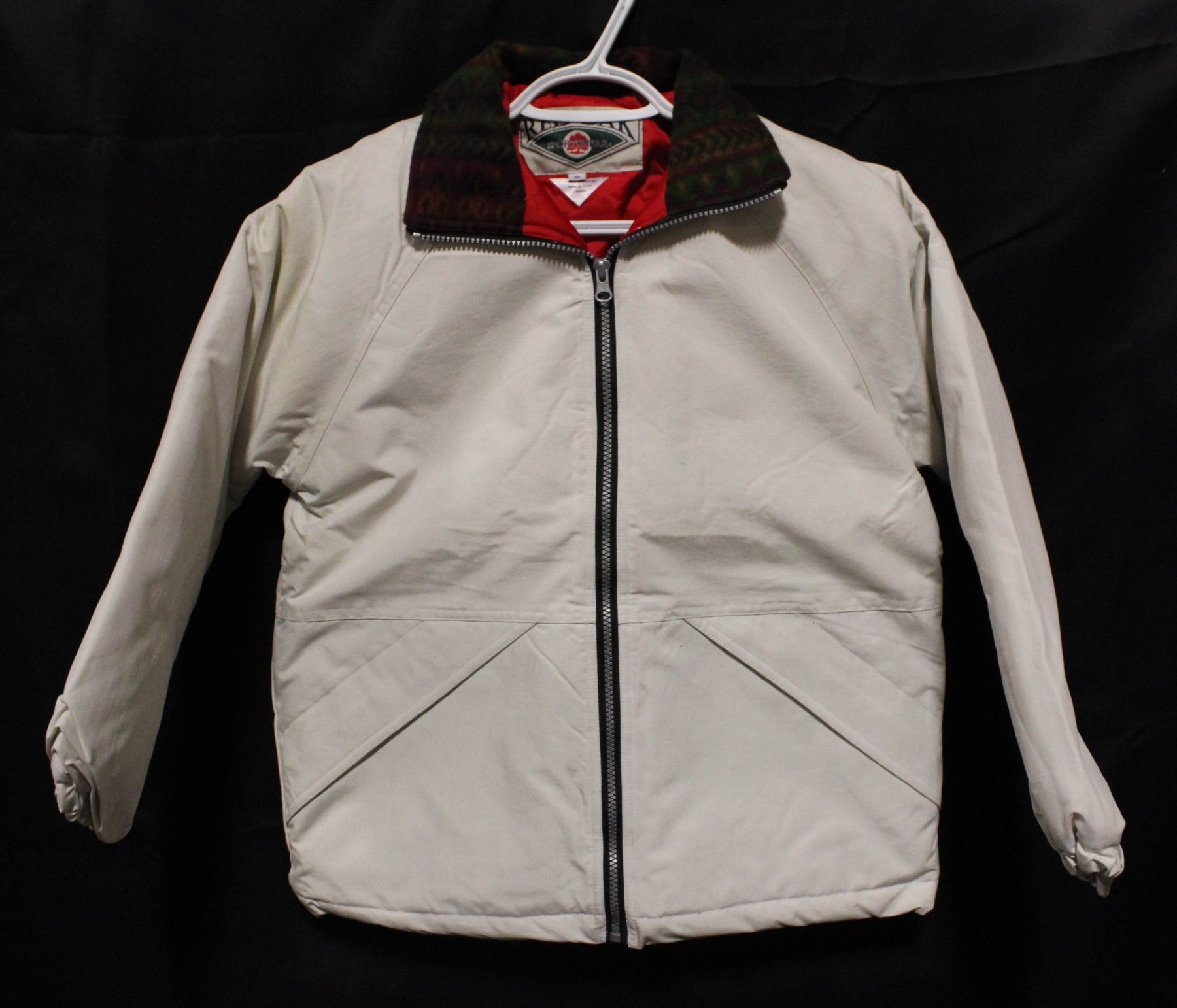 NEW WHITE INSULATED JACKET RED/GREEN COLLAR SMALL