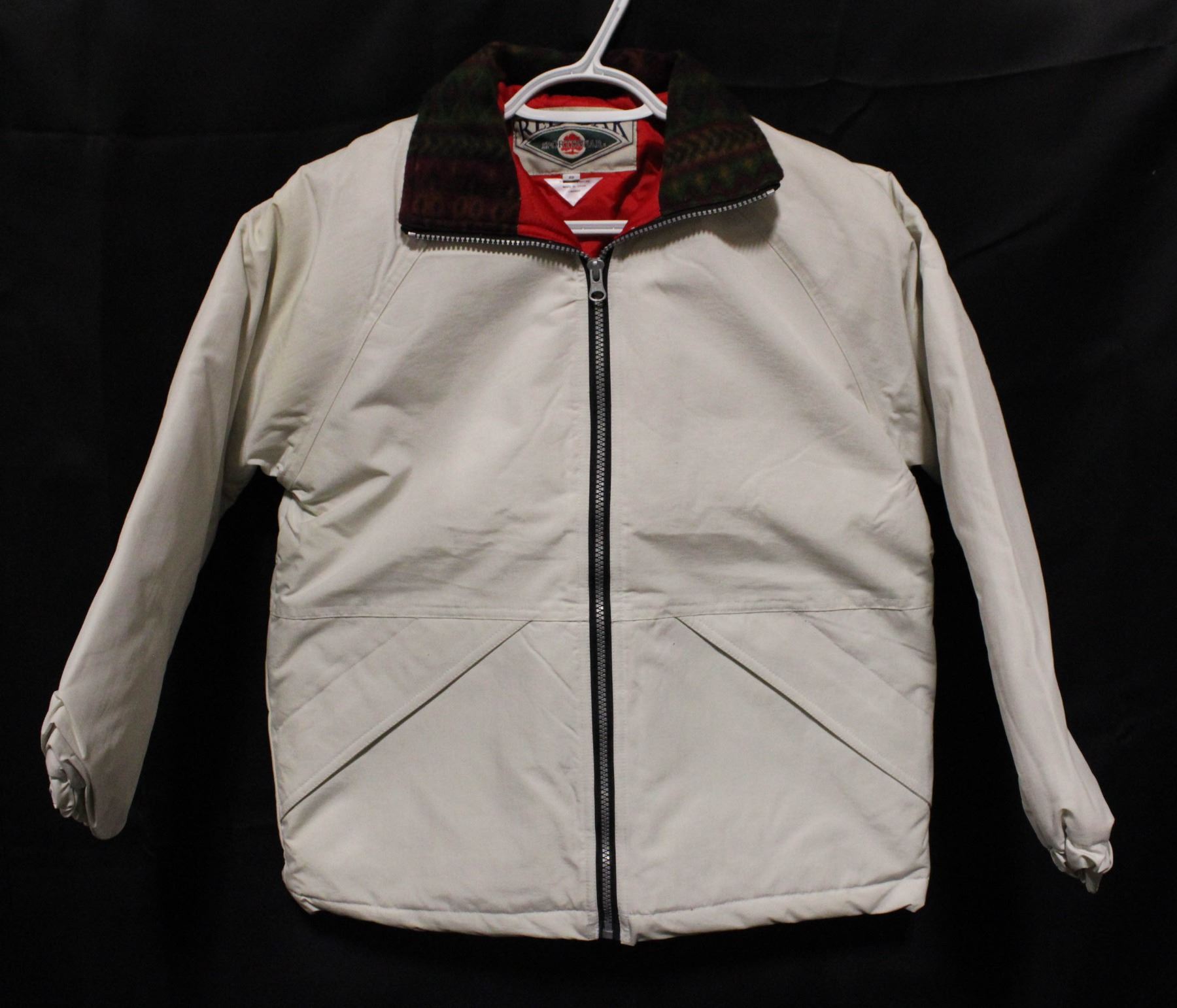NEW WHITE INSULATED JACKET RED/GREEN COLLAR SMALL