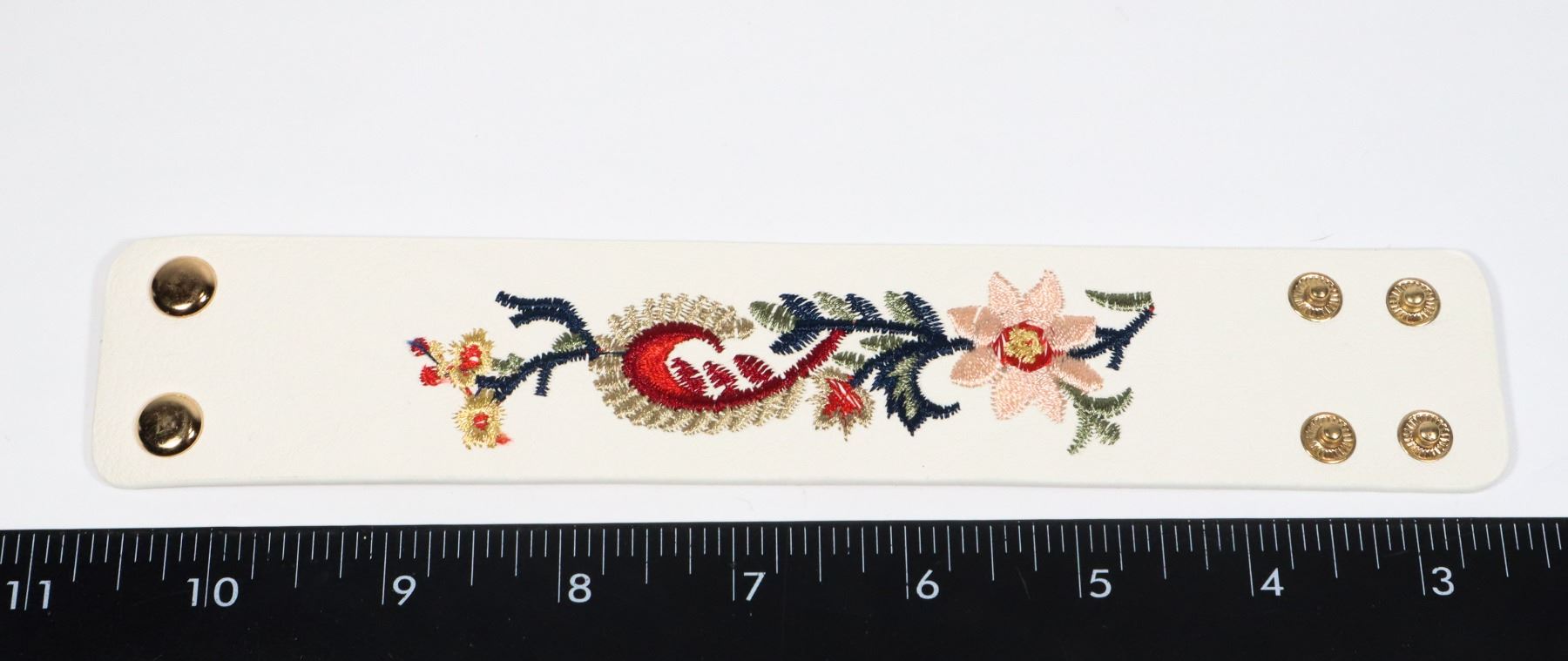 NEW WHITE LEATHER LIKE EMBROIDERED BRACELET