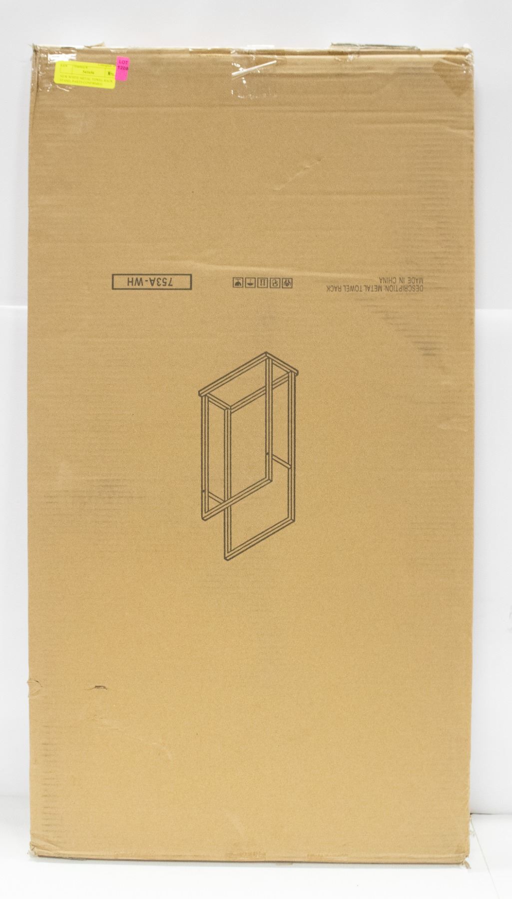 NEW WHITE METAL TOWEL RACK STAND, PARTS CONFIRMED