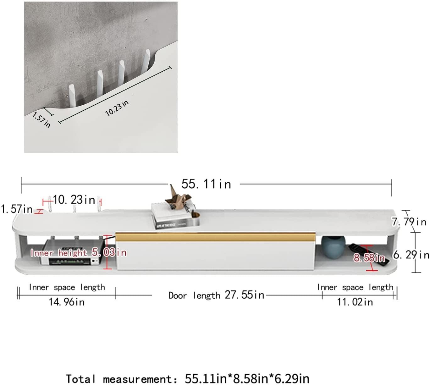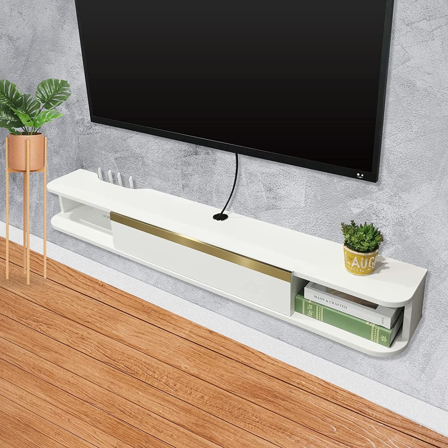 NEW WHITE WALL MOUNTED FLOATING TV SHELF, 55" WIDE