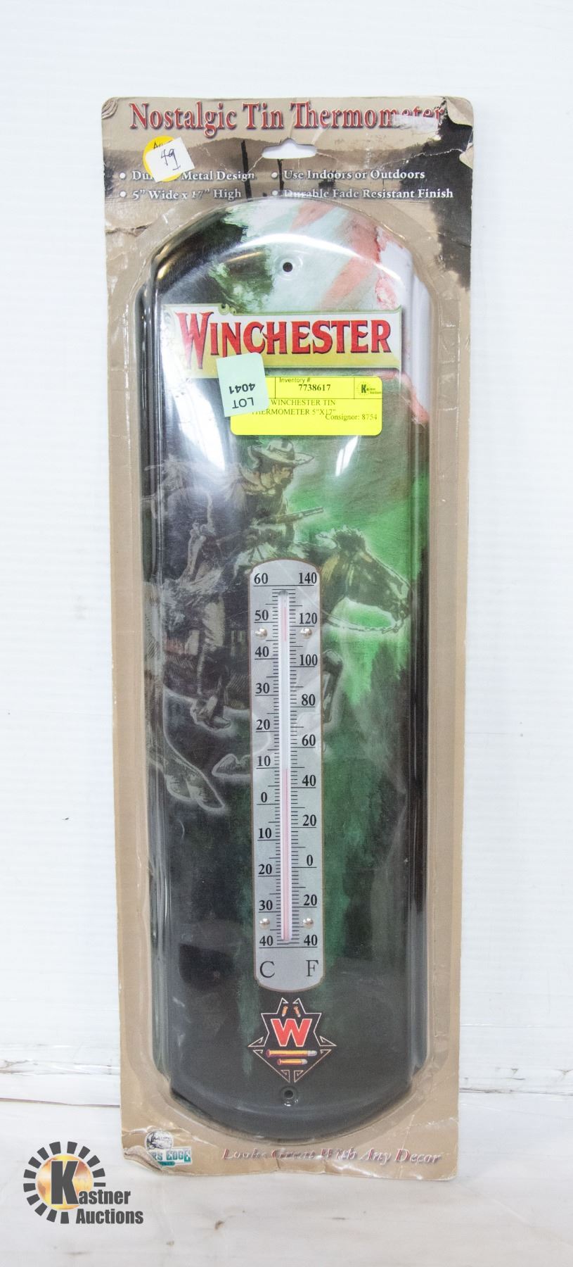 NEW WINCHESTER TIN THERMOMETER 5"X17"