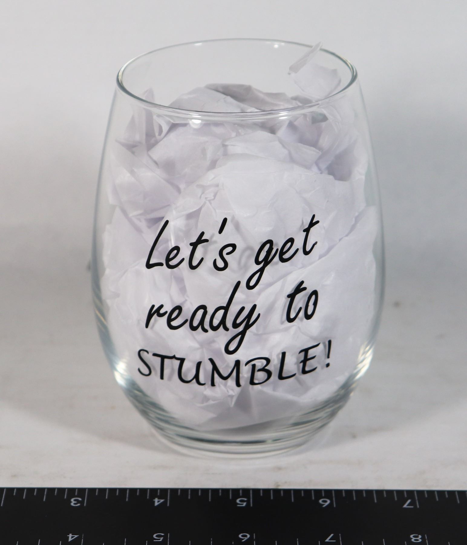 NEW WINE GLASS. "LET'S GET READY TO STUMBLE!"