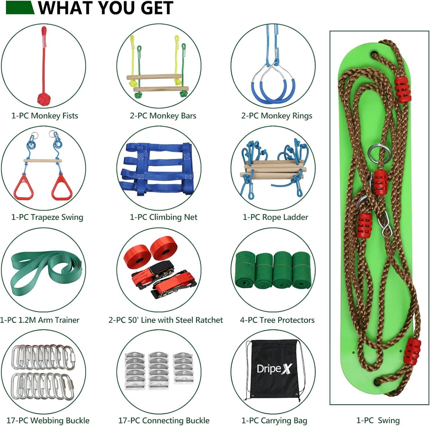 2 X 50' DOUBLE NINJA SLACKLINE, SWING, TRAPEZE SWING, ROPE LADDER AND MORE, AMZ SES **ALL ITEMS MUST BE REMOVED BY 5PM SATURDAY, NOVEMBER 30TH 2024. ALL REMAINING ITEMS WILL BE SUBJECT TO A $6.00 PER DAY STORAGE CHARGE. ANY ITEMS REMAINING AFTER MONDAY, DECEMBER 16TH 2024 WILL BE CONSIDERED FORFEITED. NO REFUNDS WILL BE ISSUED FOR FORFEITED ITEMS. TO SCHEDULE A PICK UP APPOINTMENT CLICK HERE
