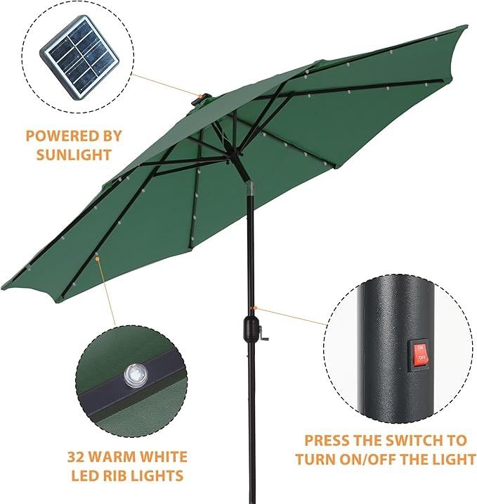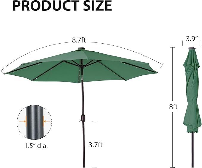 UMBRELLA, FOREST GREEN, 32 LED LIGHTS, CRANK HANDLE, PUSH BUTTON TILT, AMZ SES **ALL ITEMS MUST BE REMOVED BY 5PM SATURDAY, APRIL 5TH 2025. ALL REMAINING ITEMS WILL BE SUBJECT TO A $6.00 PER DAY STORAGE CHARGE. ANY ITEMS REMAINING AFTER MONDAY, APRIL 21ST 2025 WILL BE CONSIDERED FORFEITED. NO REFUNDS WILL BE ISSUED FOR FORFEITED ITEMS. TO SCHEDULE A PICK UP APPOINTMENT CLICK HERE