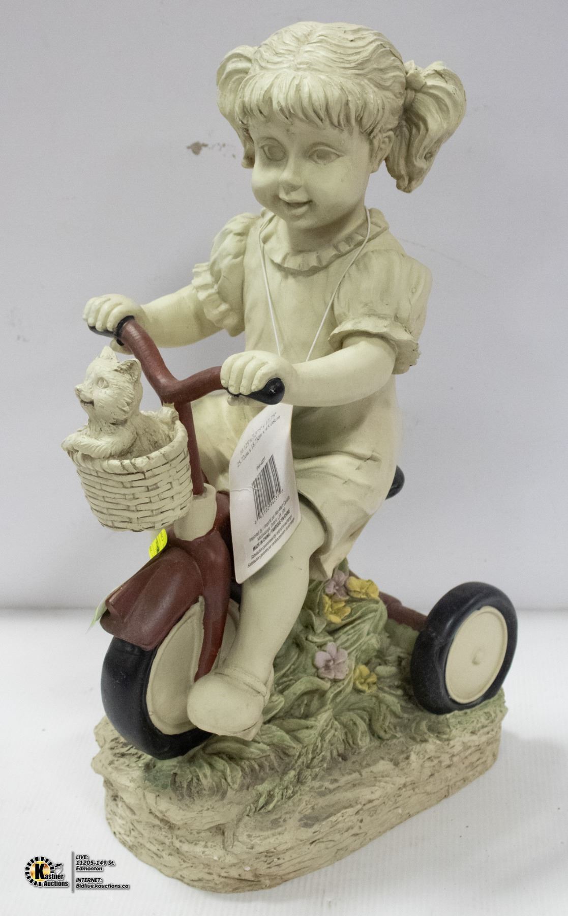 NEW WITH TAGS GARDEN GIRL ON TRICYCLE 17 IN TALL