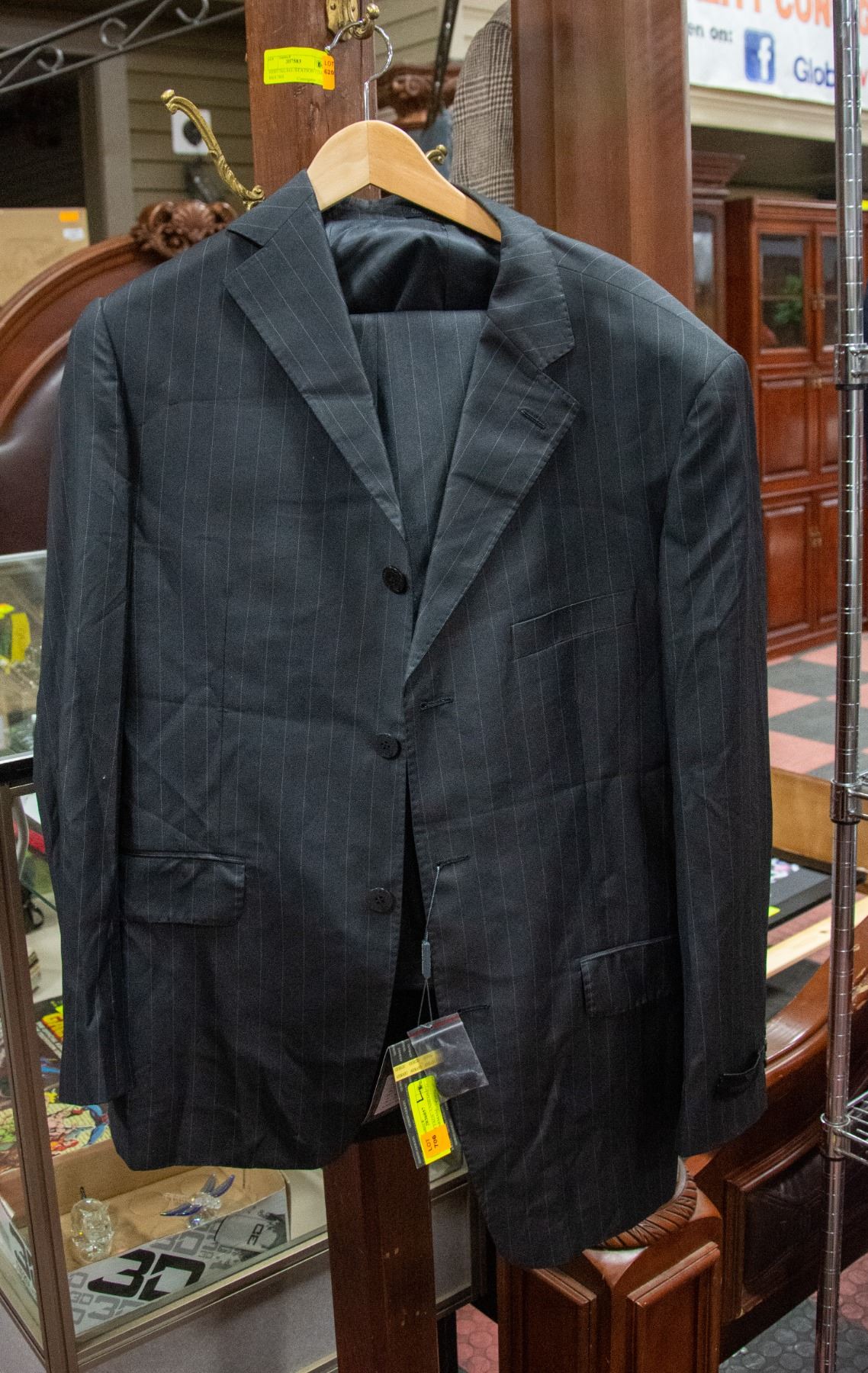 2-PIECE SUIT - JACKET SIZE 50 AND PANTS SIZE 34 (80% WOOL/20% POLYESTER - RETAIL OVER $2,000**ALL ITEMS MUST BE REMOVED BY 5PM MONDAY, OCTOBER 17TH, 2022. ALL REMAINING ITEMS WILL BE SUBJECT TO A $6.00 PER DAY STORAGE CHARGE. ANY ITEMS REMAINING AFTER MONDAY, OCTOBER 29, 2022 WILL BE CONSIDERED FORFEITED. NO REFUNDS WILL BE ISSUED FOR FORFEITED ITEMS. TO SCHEDULE A PICK UP APPOINTMENT CLICK HERE
