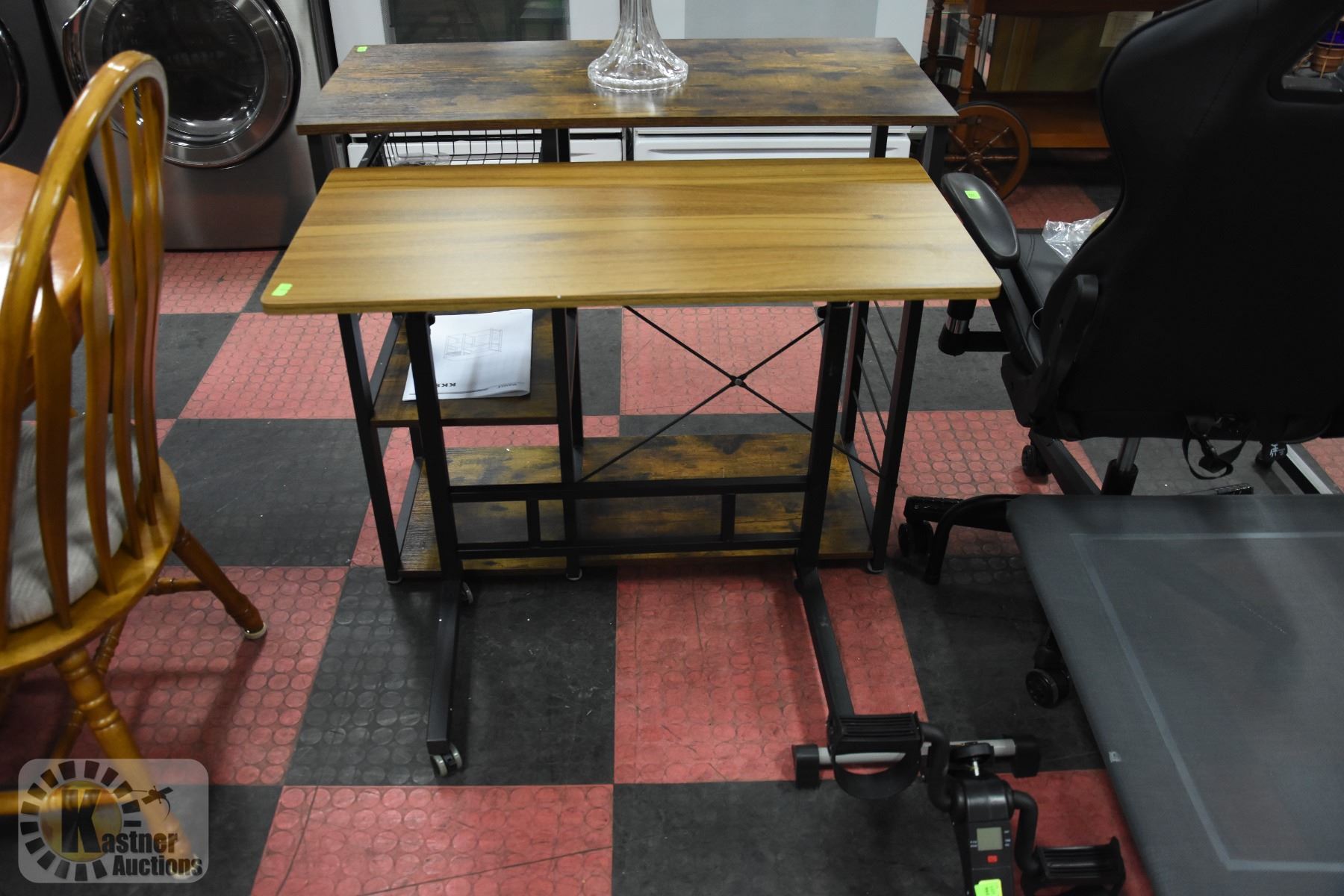 NEW WOOD TONE ADJUSTABLE HEIGHT DESK ON WHEELS