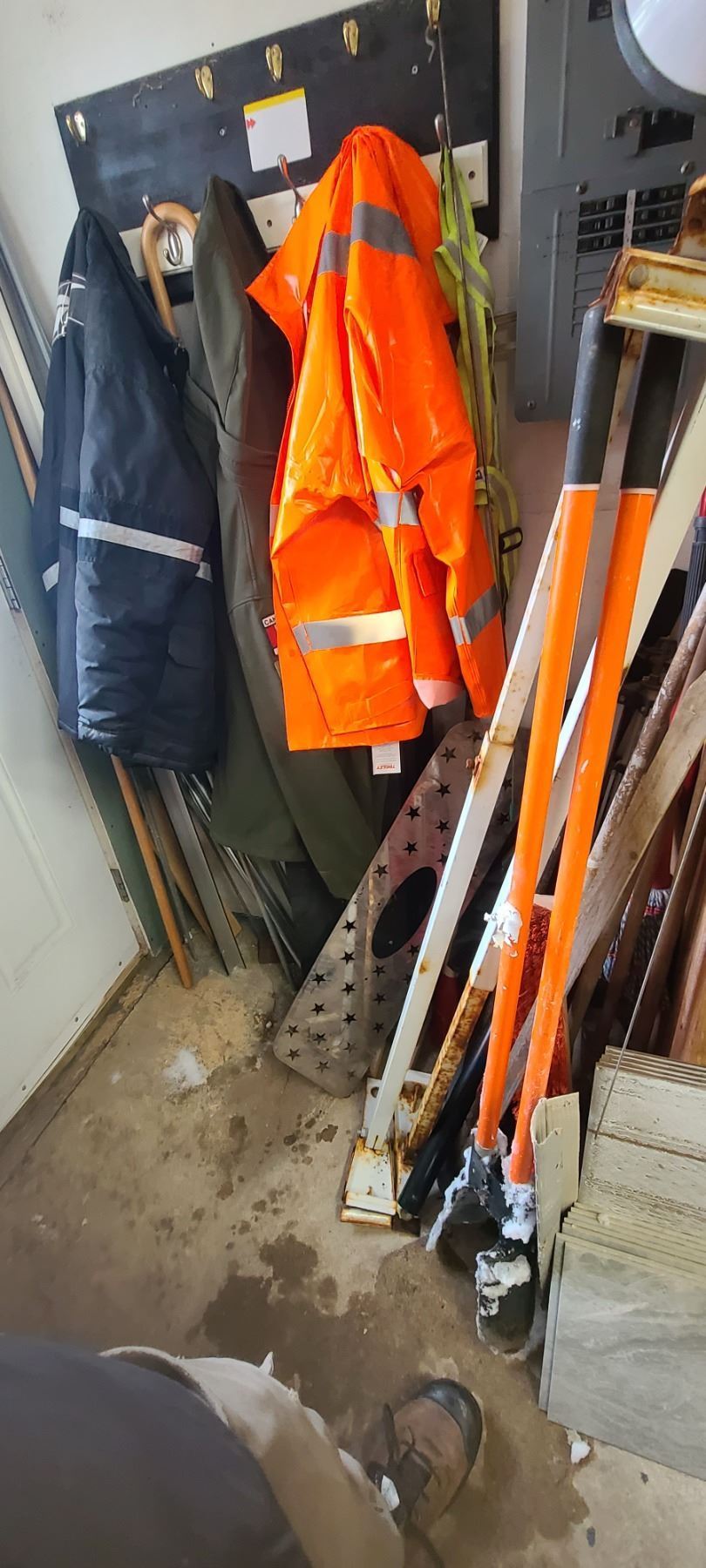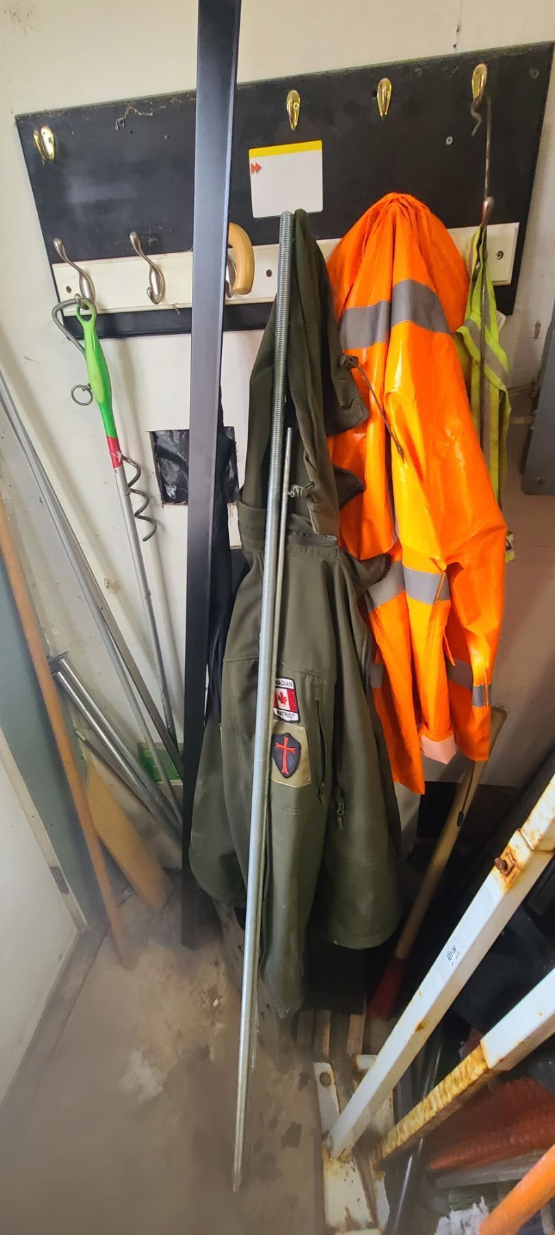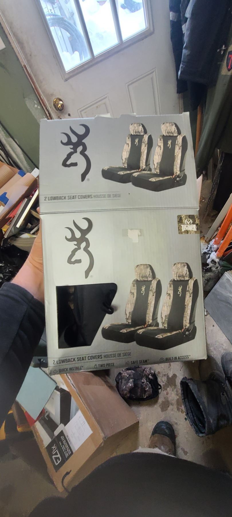 NEW XL FLAME RESISTANT RAINER, POSTAL SHOVEL, FOUR SHOP BRUSHES, READY ROD, BROWNING SEAT COVERS
