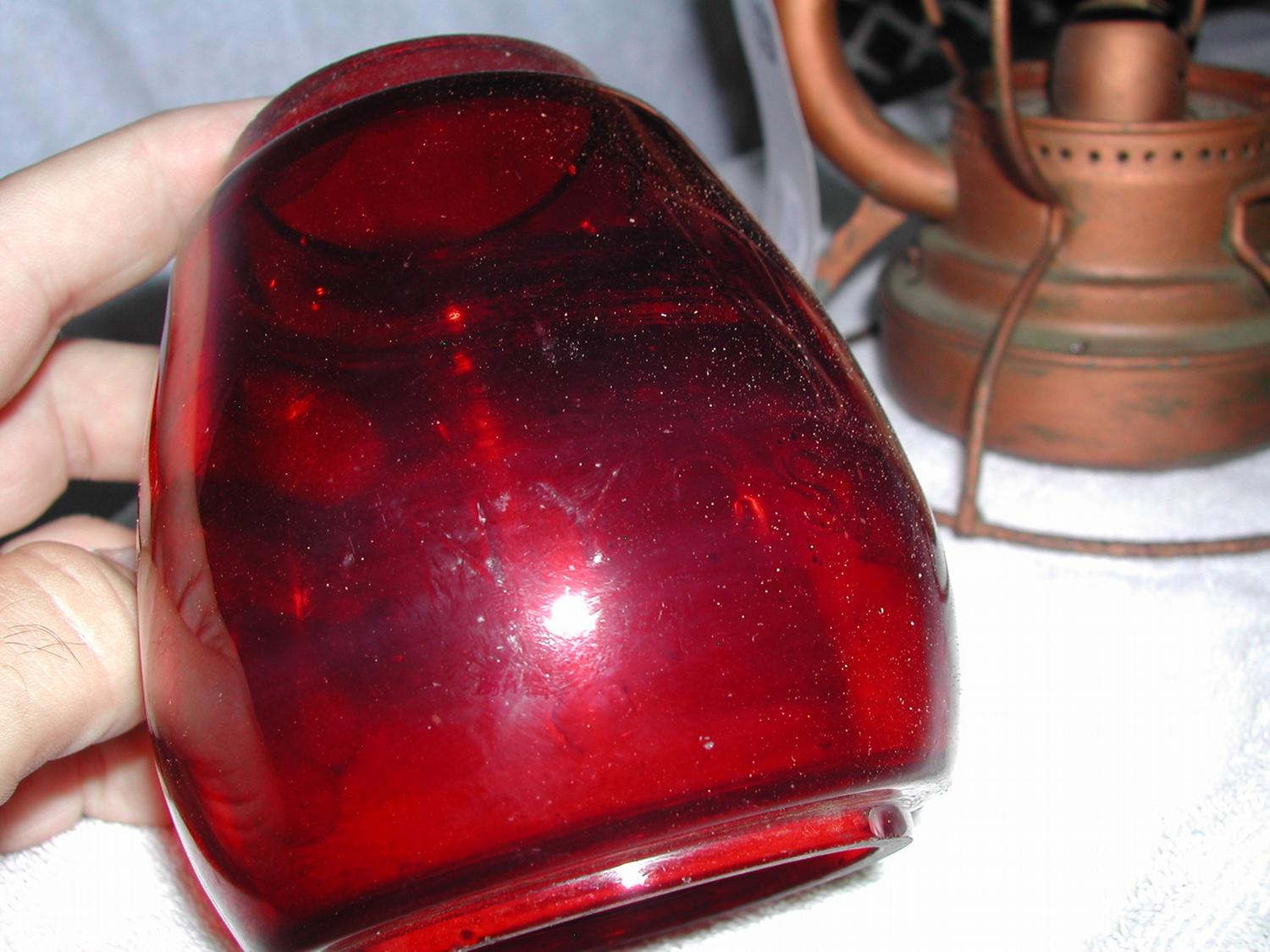 NEW YORK CENTRAL SYSTEM, 4 1/4" RED GLOBE MARKED NYCS, DIETZ VESTA LAMP PAINTED