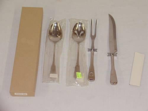 NEW YORK STATE ASSN. OF FIRE CHIEFS STAINLESS STEEL SERVING SPOONS and CARVING SET W/ BOX (UNUSED);