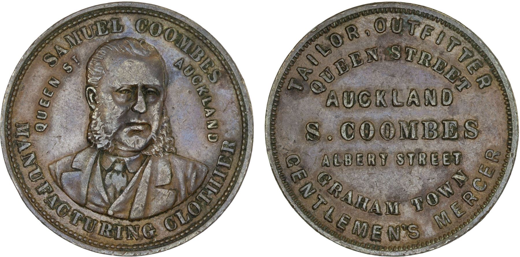 NEW ZEALAND: AE penny token, ND (1874), KM-Tn15, Samuel Coombes, Auckland, minor revrese rim nicks, VF.