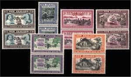 1940 Centennial 2d, 2½d, 3d, 4d, 6d and 8d in vert pairs, one stamp in each pair with ff joined var (SG O144a-49a) fresh u/m