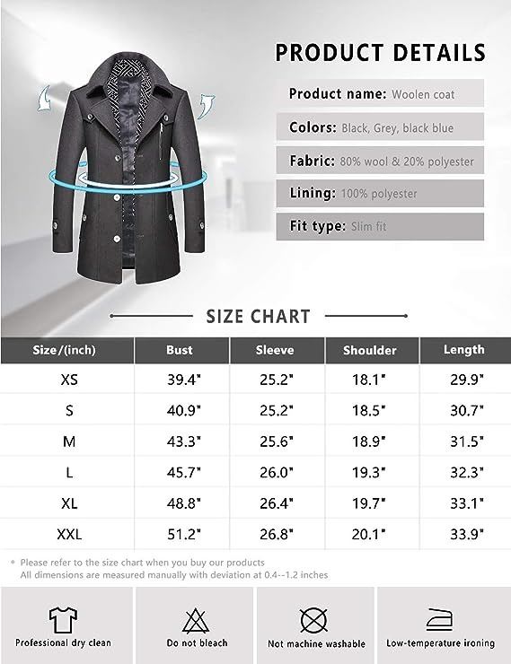NEW ZEETOO MENS XL GREY PEA COAT, WOOL BLEND