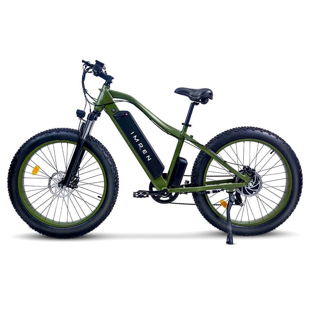 4. IMREN e-bike can reach 15mph top, 90km range with 750Wh. Total weight is 98lbs and length is 61 inches Dark color (Dark blue and white).