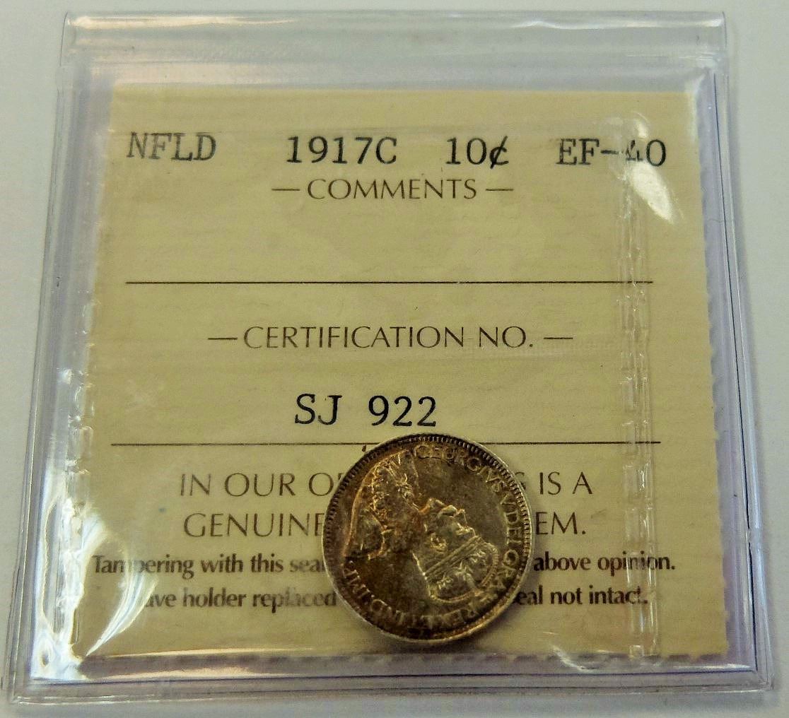 NEWFOUNDLAND-10 CENT 1917C ICCS EF40