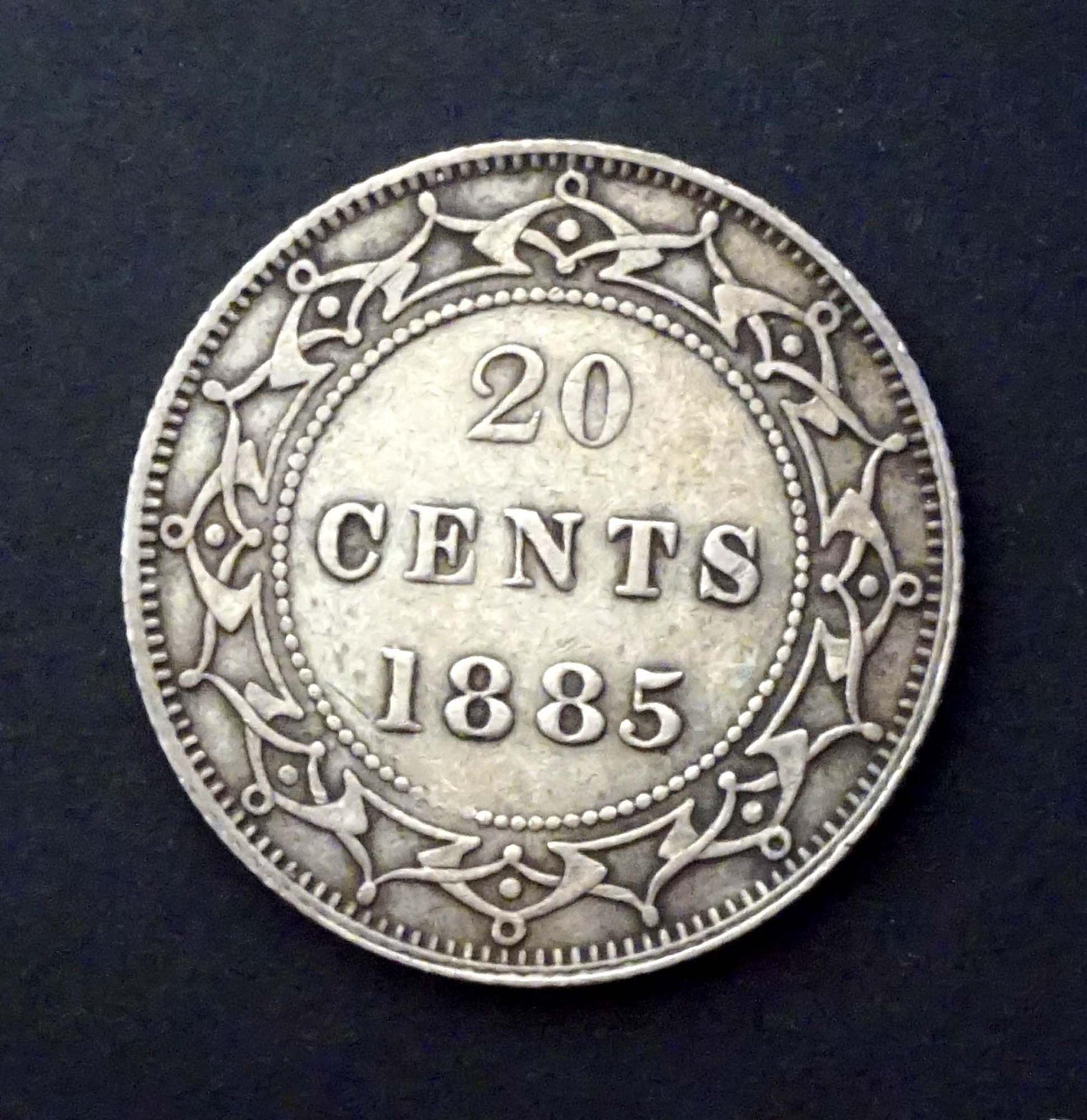 NEWFOUNDLAND 1885 H, 20 Cents Silver. VF+