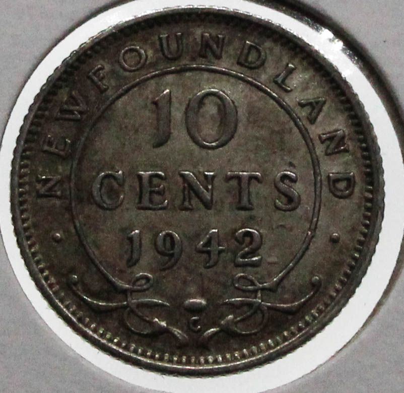 NEWFOUNDLAND 1942 SILVER 10 CENT COIN