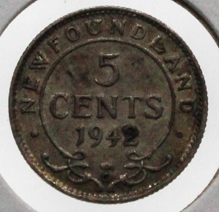 NEWFOUNDLAND 1942 SILVER 5 CENT COIN