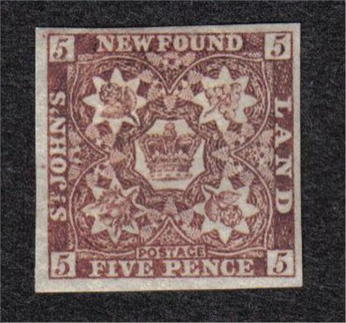 NEWFOUNDLAND #19a IMPERF XF-NH ORANGE BROWN SHADE