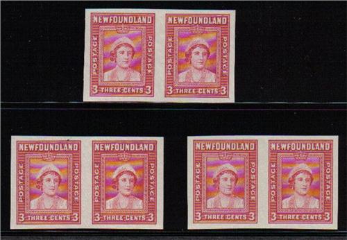 NEWFOUNDLAND #249P XF IMPERF PAIR ON 3 DIFF SHADE PAPER<Br>*** ITEM HAS NO FAULTS***