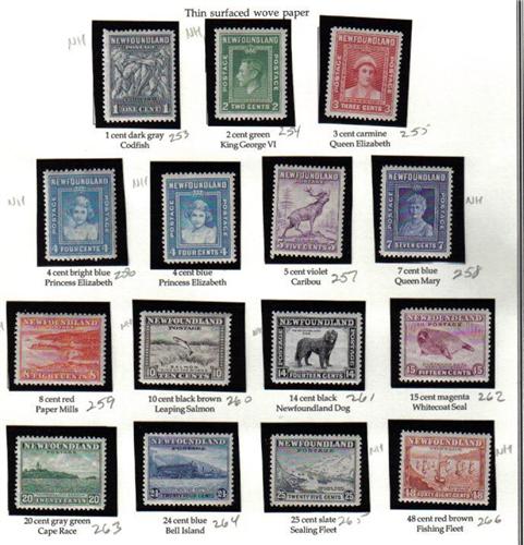 NEWFOUNDLAND #253 to 266 VF-NH-LH SET