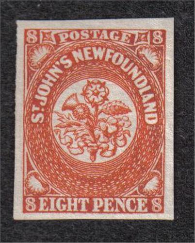 NEWFOUNDLAND #8 IMPERF XF-LH C$500,00