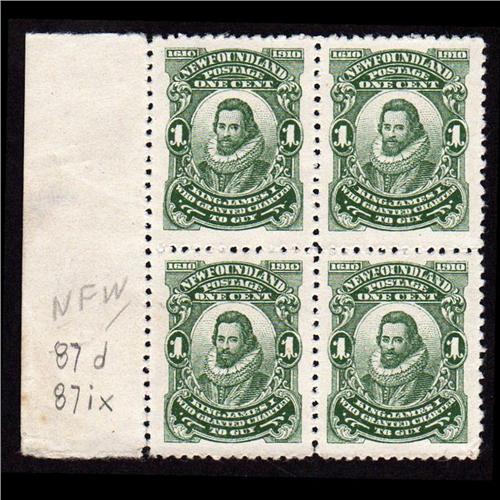 NEWFOUNDLAND #87ix+87xii+87(2X) XF-NH MINT BLOCK 4 CAT$300,00