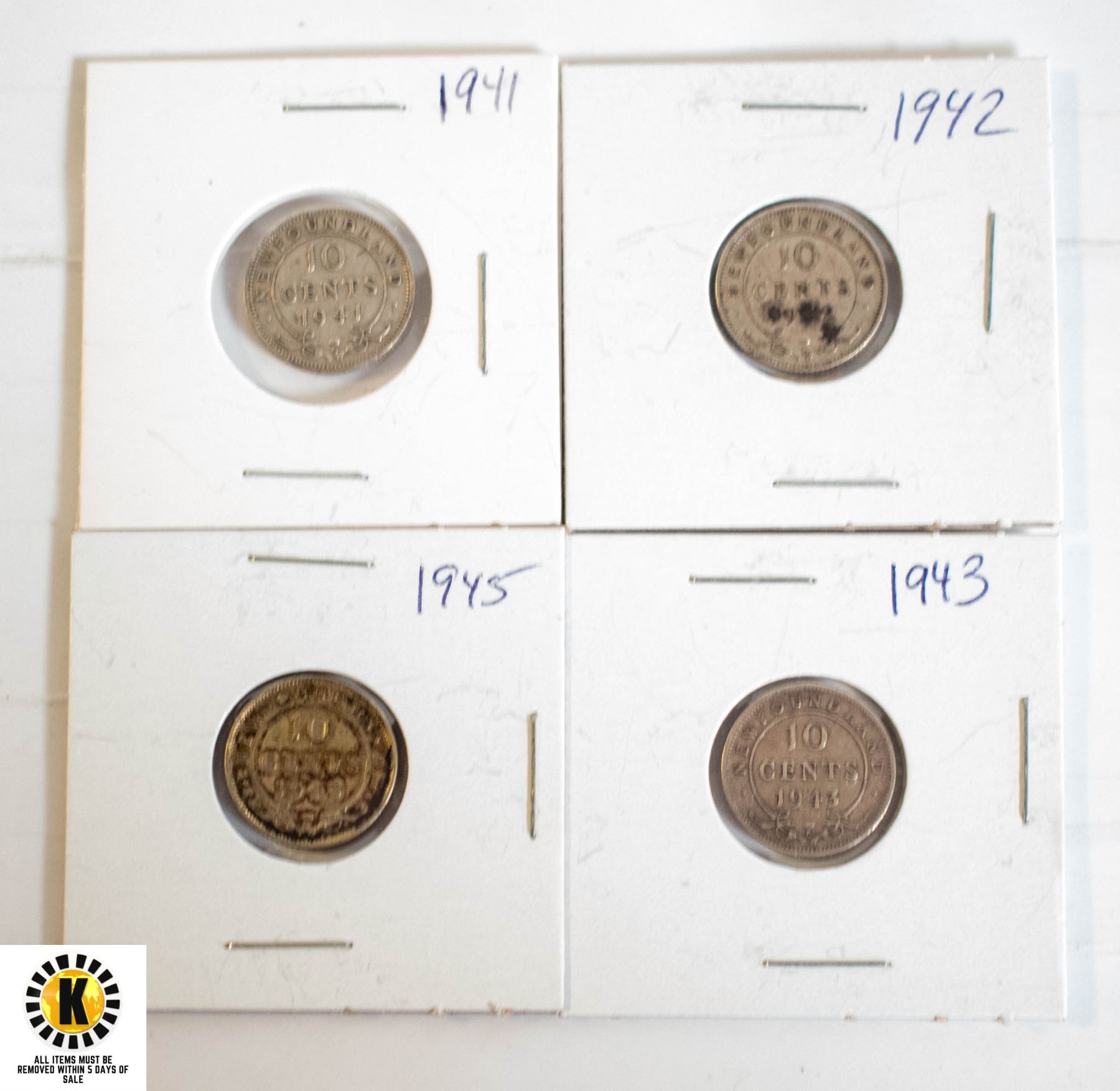 NEWFOUNDLAND SILVER COINS 1941,42,43 & 45