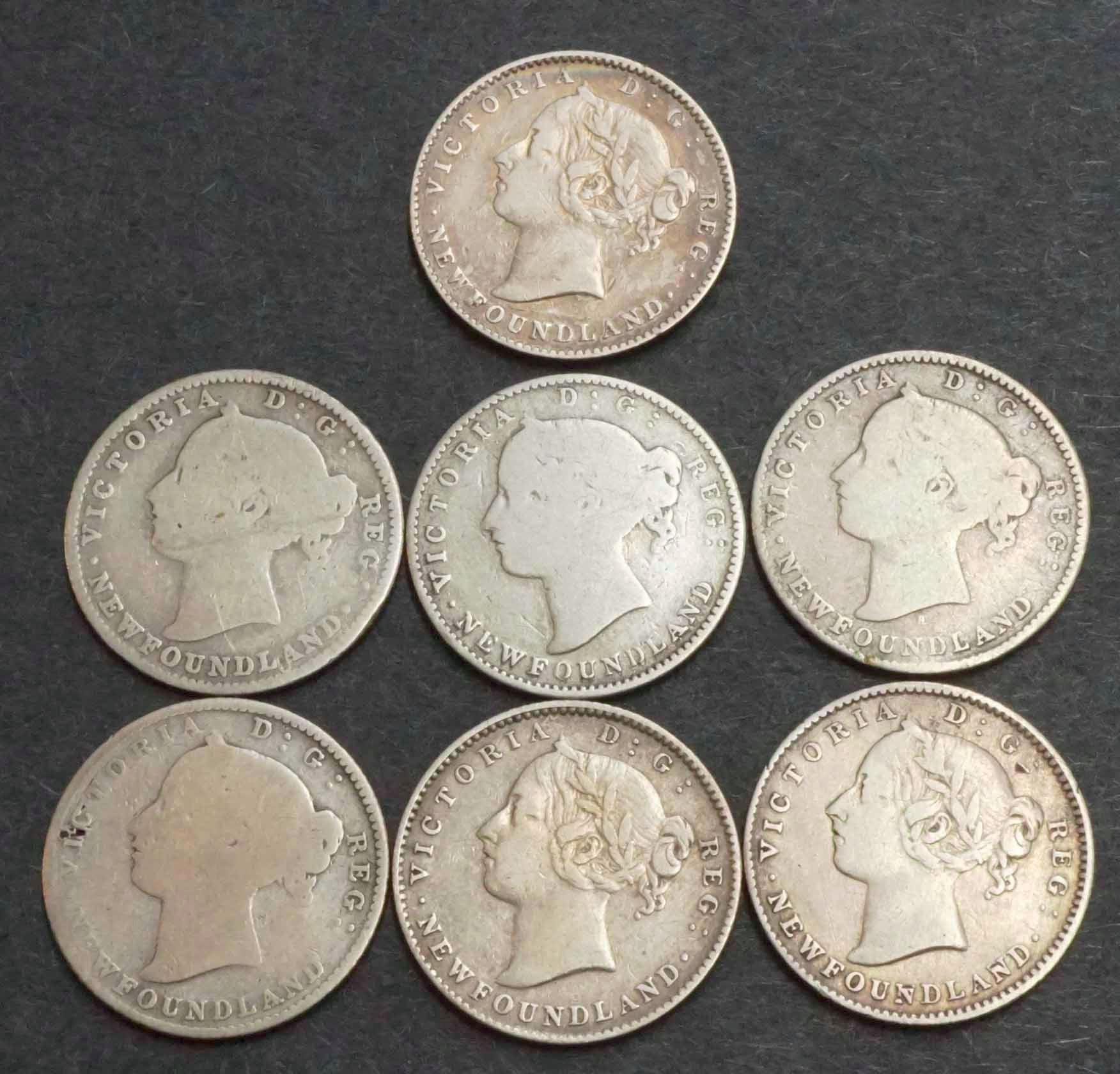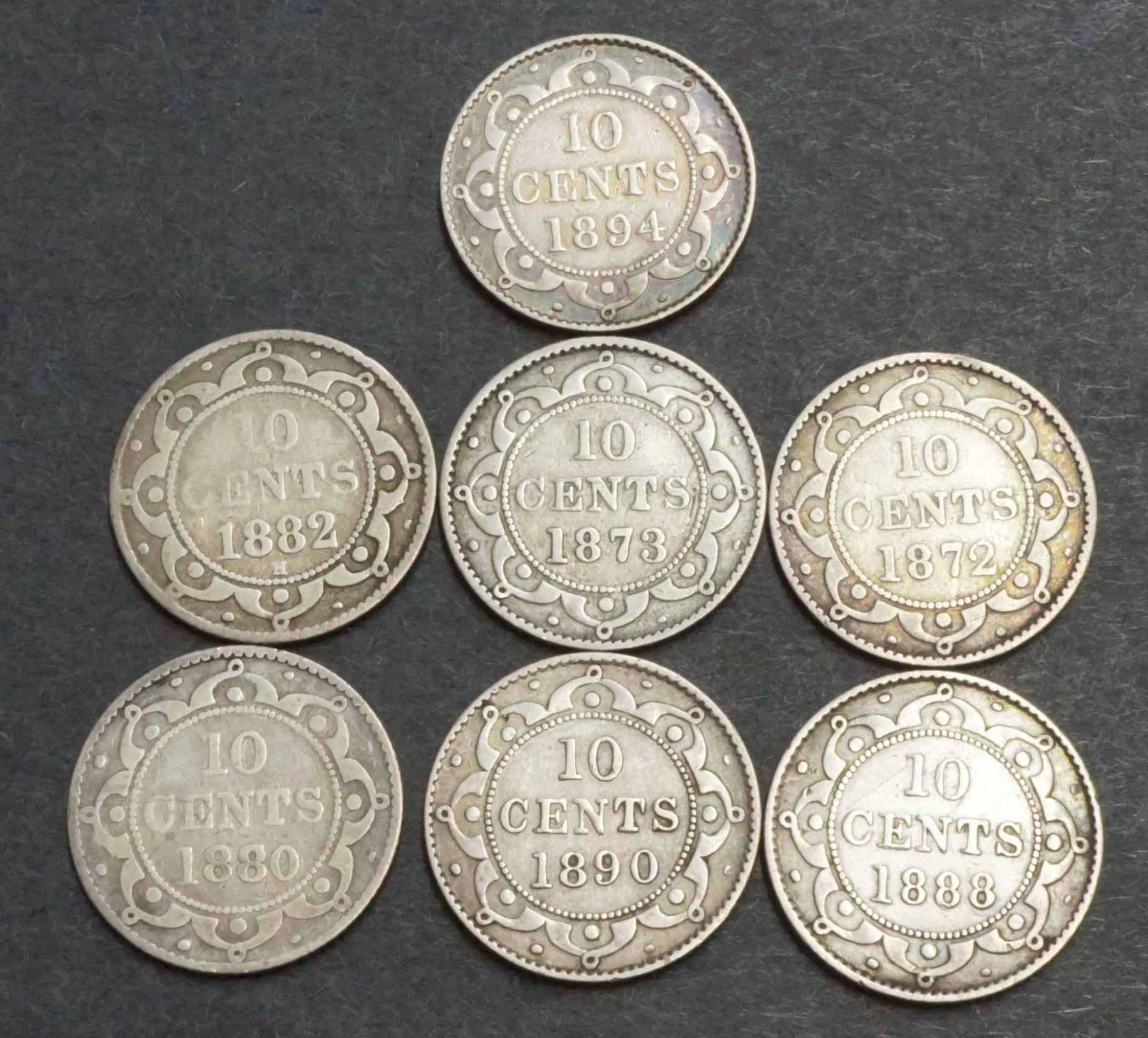 1) 1872H - G; 2) 1873 - G; 3) 1880 - G; 4) 1882H - G; 5) 1888 - F; 6) 1890 - VF; 7) 1894 - VF.