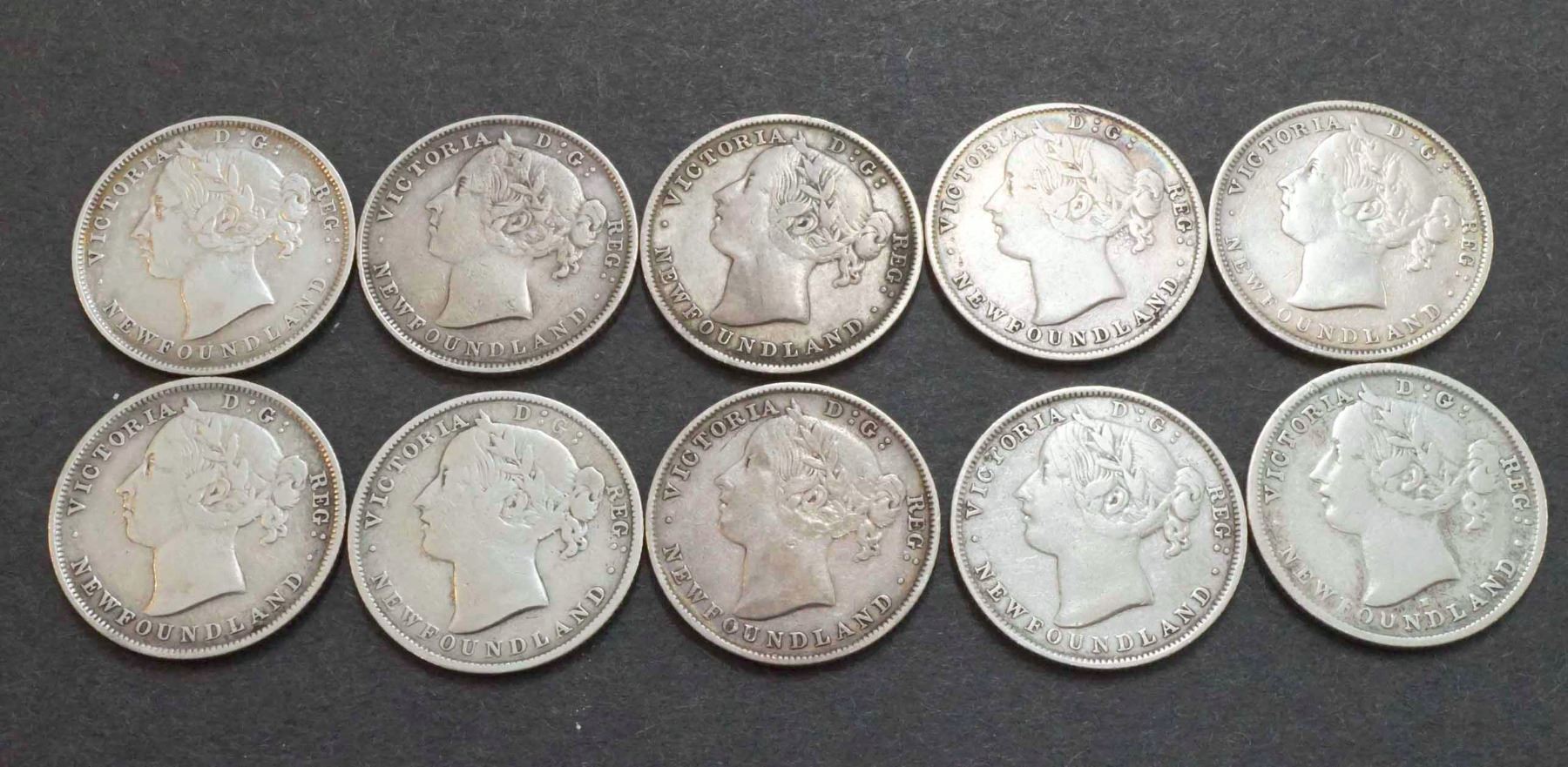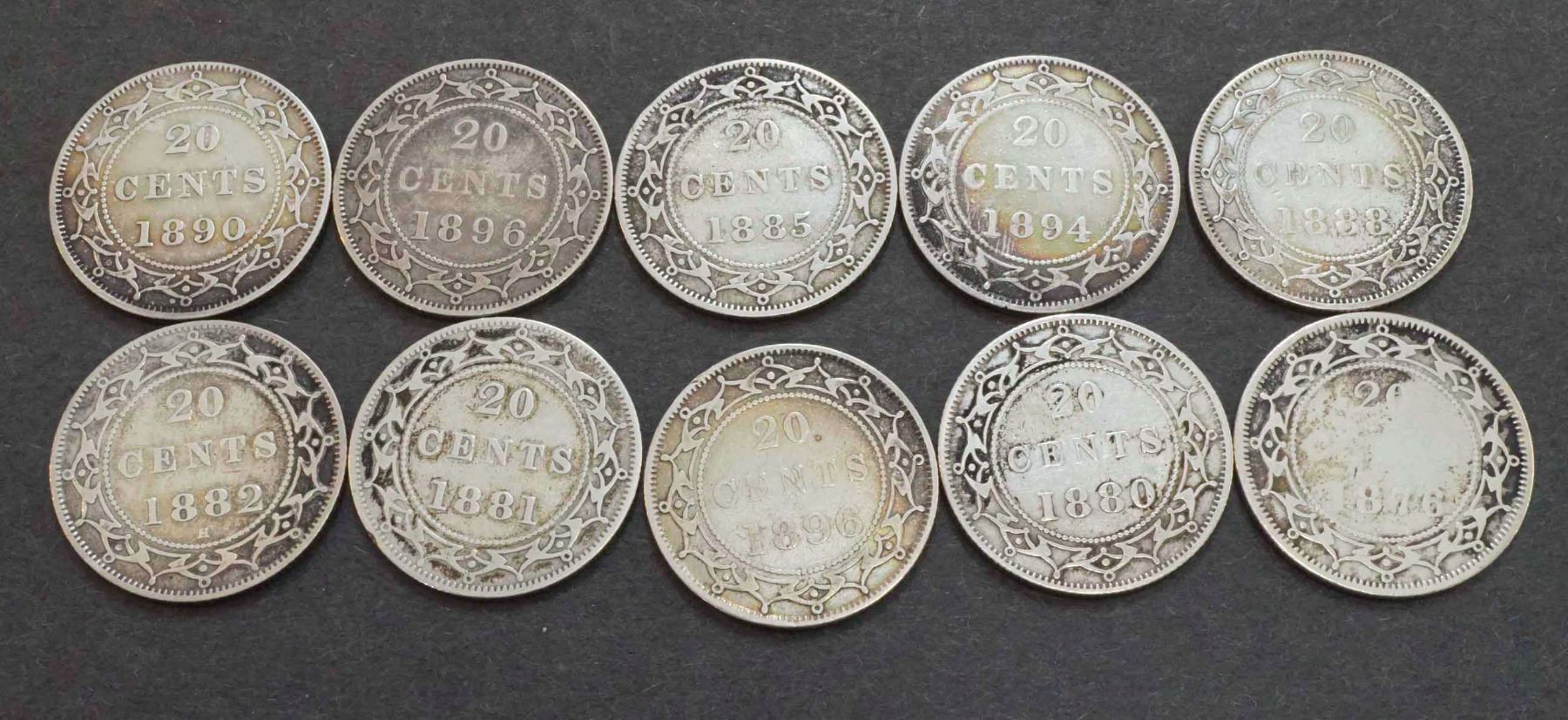 Our Grades : 1) 1876H - G 2) 1880H - VG 3) 1881 - VG 4) 1882H - F 5) 1885 - VG 6) 1888 - F 7) 1890 - VF 8) 1894 - VG 9) 1896 lg. 6 - VG 10) 1 1896 sm. 6 - VG