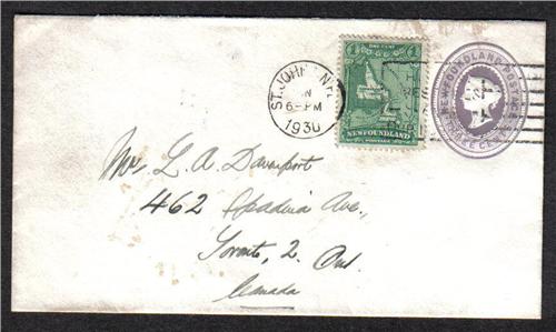NEWFOUNDLAND #U1 + 163 ON COVER TO TORONTO *RARE*<Br>*** ITEM HAS NO FAULTS***