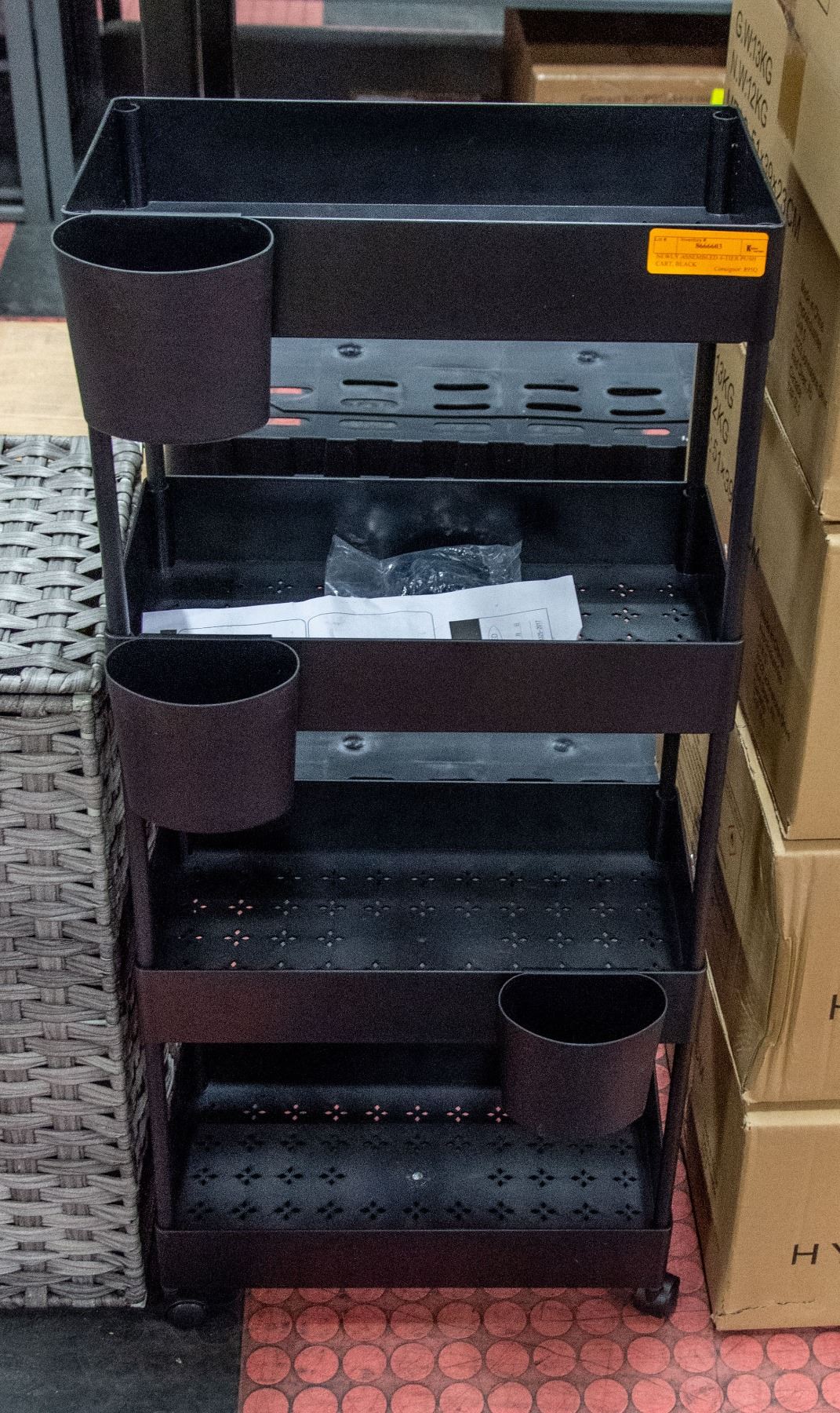 NEWLY ASSEMBLED 4-TIER PUSH CART, BLACK