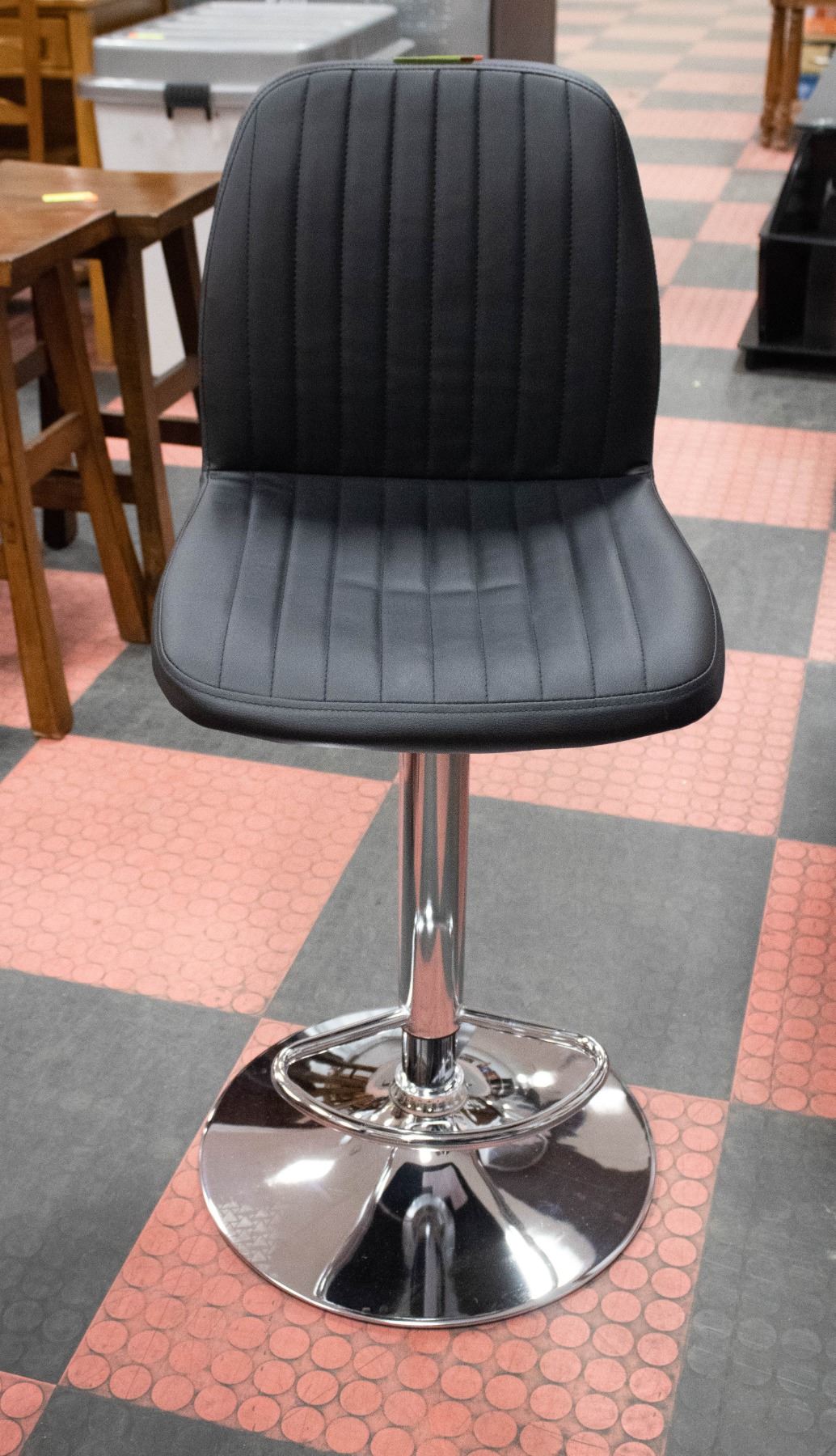 STOOL, STAINLESS FINISH WITH BLACK SEAT, HEIGHT ADJUSTABLE FROM SEAT LEVEL TO GROUND 23" - 29", AMZ SES
