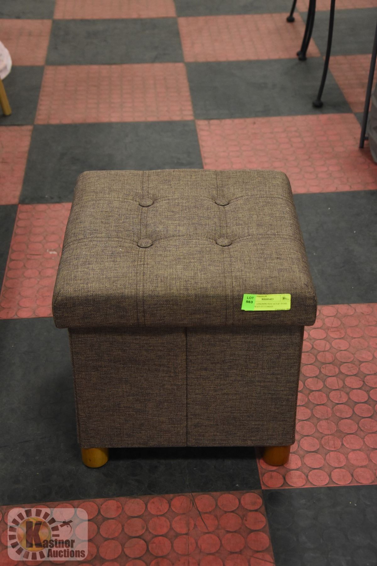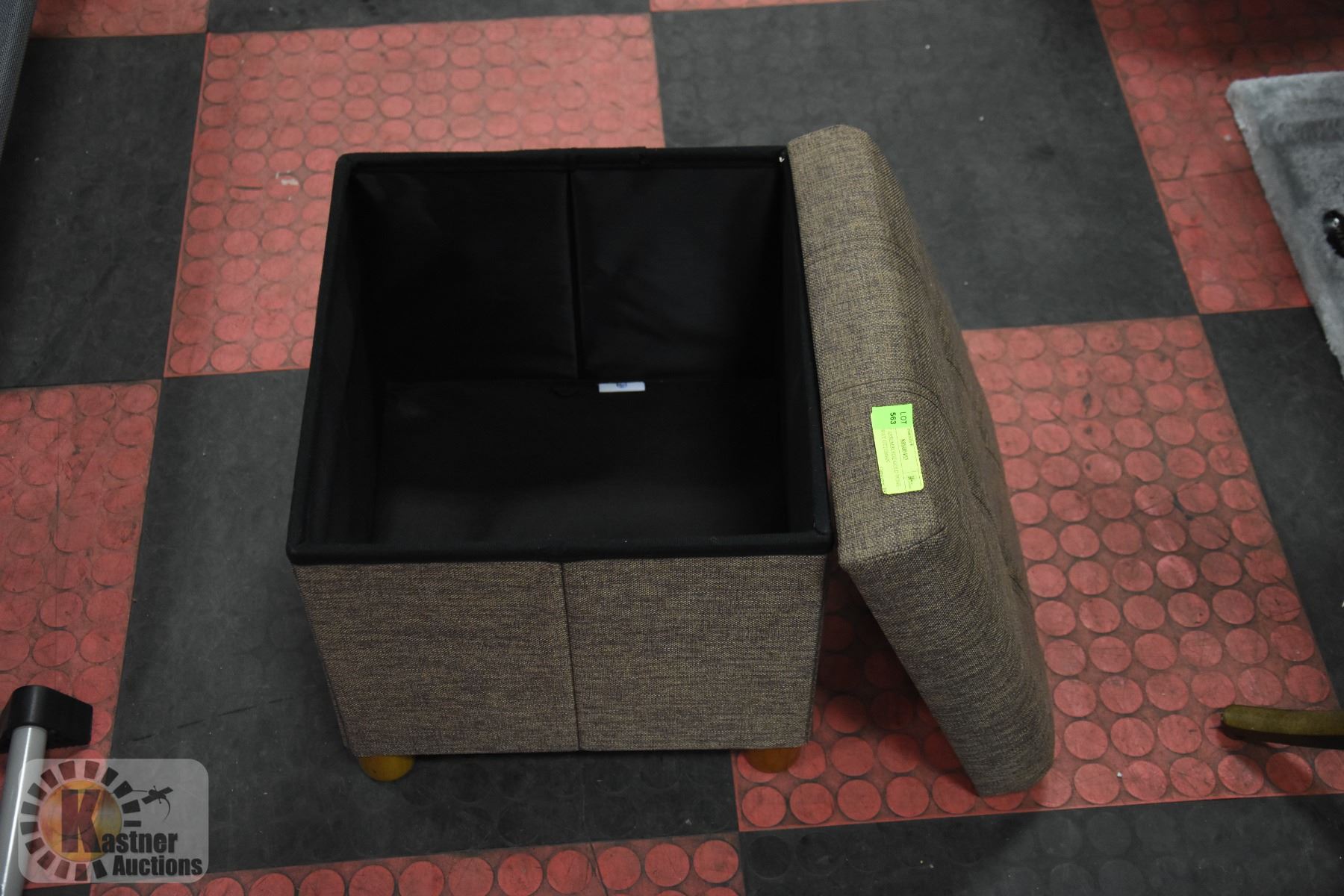 FOOT STOOL, STORAGE, APPROX. 15 X 15 X 15", HIGH QUALITY FABRIC WITH BUTTON TOPS AND DETAILED STITCHING
