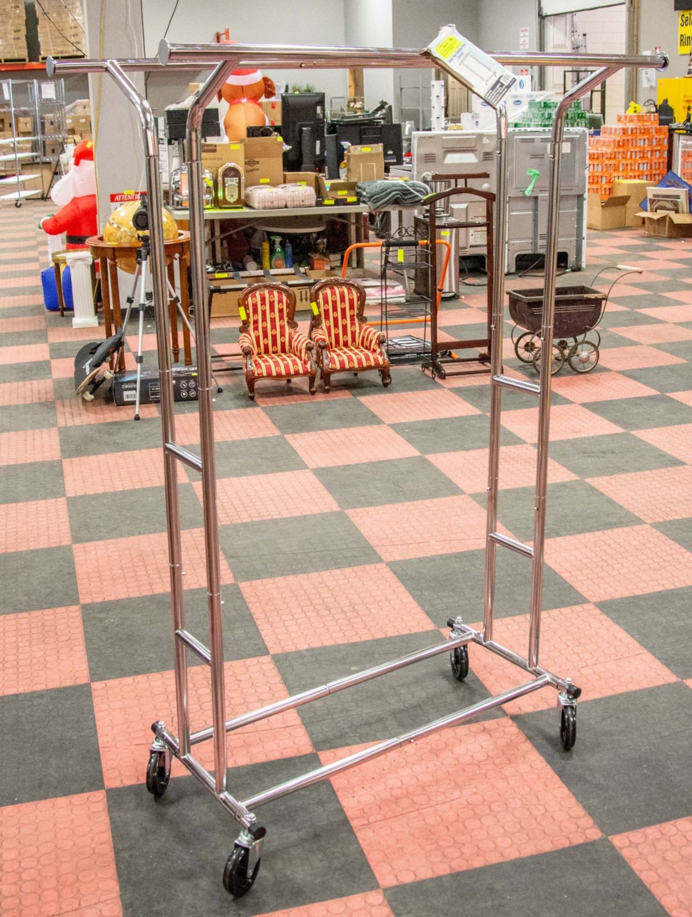RACK, MADE BY SIMPLE HOUSEWARES, SILVER METAL FRAME WITH CASTER WHEELS, TESTED, ALL PARTS CONFIRMED, INSTRUCTION MANUAL INCLUDED, AMZ SES