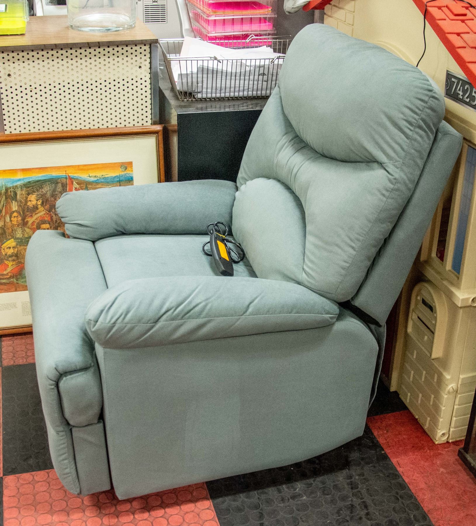 RECLINER CHAIR, 6 POINT MASSAGE AND HEATED LUMBAR POINTS, ERGONOMIC DESIGN, FULL TILT BUTTON PULL AND PUSH BACK FULL EXTENSION, REMOTE FOR MASSAGE AND HEAT FUNCTION WITH MULTIPLE SETTINGS, MICROFIBER FABRIC, TESTED, MSRP. $669.99 *EASY ASSEMBLY AND DISASSEMLBY, CAN BE REPACKED EASILY, ORIGINAL BOX IS 32 X 30 X 25"**ALL ITEMS MUST BE REMOVED BY 5PM FRIDAY, AUGUST 5TH, 2022. ALL REMAINING ITEMS WILL BE SUBJECT TO A $6.00 PER DAY STORAGE CHARGE. ANY ITEMS REMAINING AFTER FRIDAY, AUGUST 19, 2022 WILL BE CONSIDERED FORFEITED. NO REFUNDS WILL BE ISSUED FOR FORFEITED ITEMS.** TO SCHEDULE A PICK UP APPOINTMENT CLICK HERE