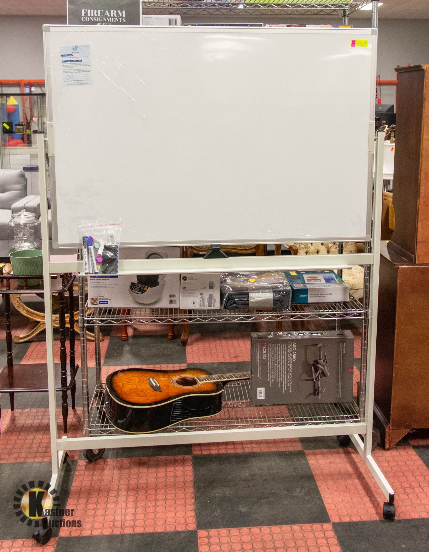 BOARD ON CASTORS W/ MARKERS MAGNETS AND MORE APPROX 50"X70 AMZ SES **ALL ITEMS MUST BE REMOVED BY 5PM SATURDAY, APRIL 6TH 2024. ALL REMAINING ITEMS WILL BE SUBJECT TO A $6.00 PER DAY STORAGE CHARGE. ANY ITEMS REMAINING AFTER MONDAY, APRIL 22ND, 2023 WILL BE CONSIDERED FORFEITED. NO REFUNDS WILL BE ISSUED FOR FORFEITED ITEMS. TO SCHEDULE A PICK UP APPOINTMENT CLICK HERE
