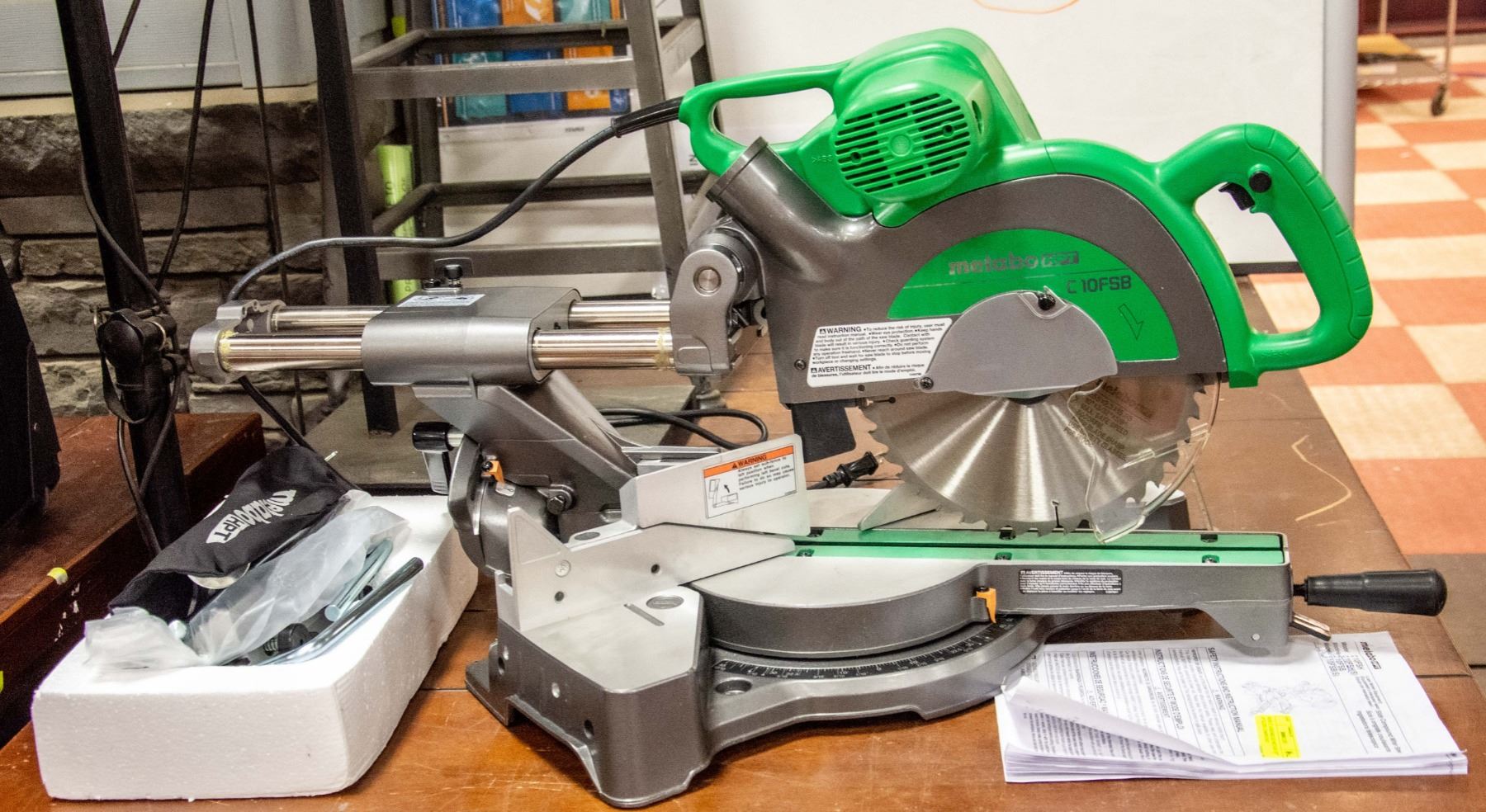 MITER SAW, DOUBLE BEVEL, ELECTRONIC SPEED CONTROL, 12 AMP MOTOR, ELECTRIC BRAKE FEATURE, TESTED, ALL PARTS CONFIRMED, INSTRUCTION MANUAL INCLUDED, AMZ SES