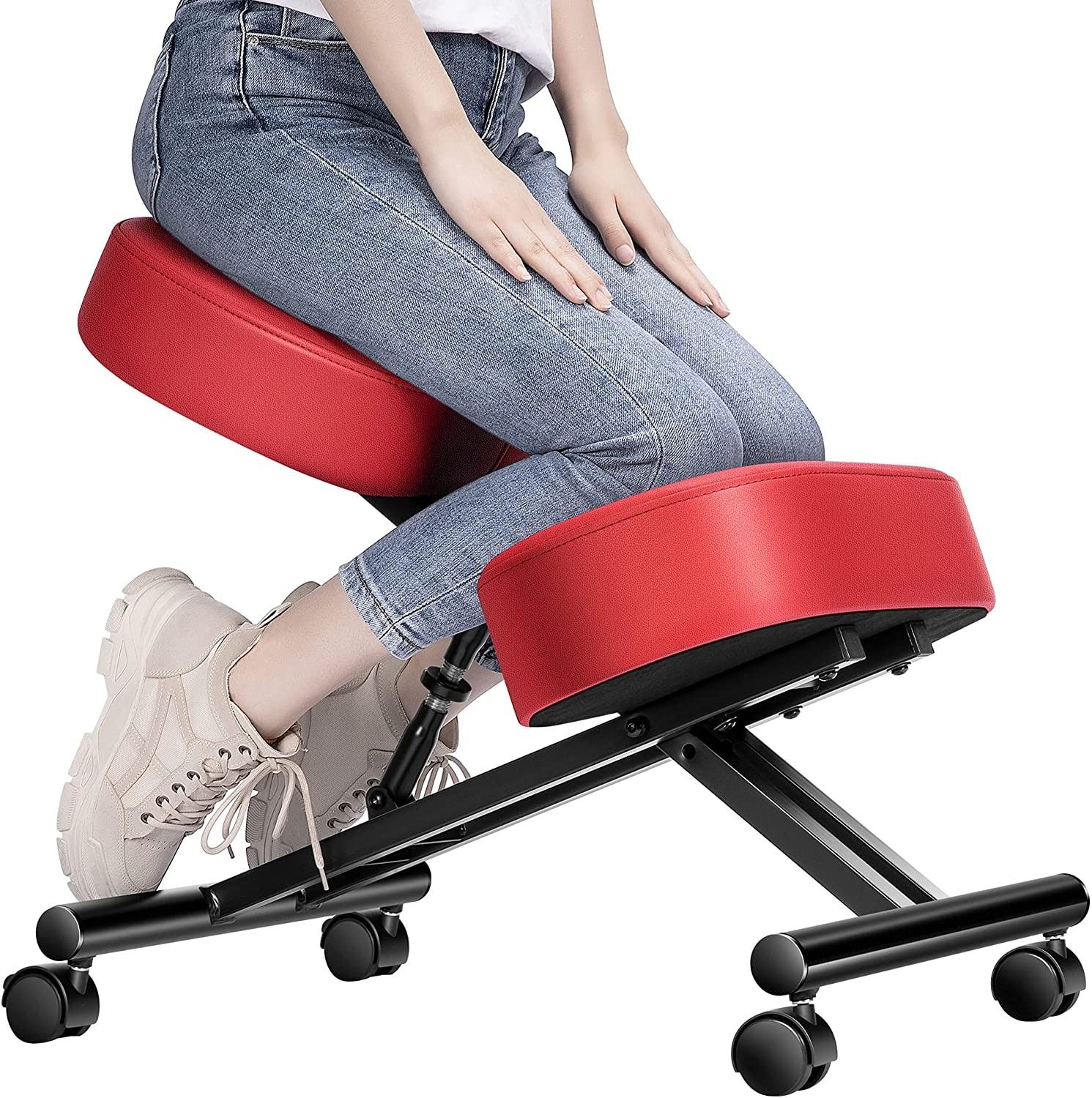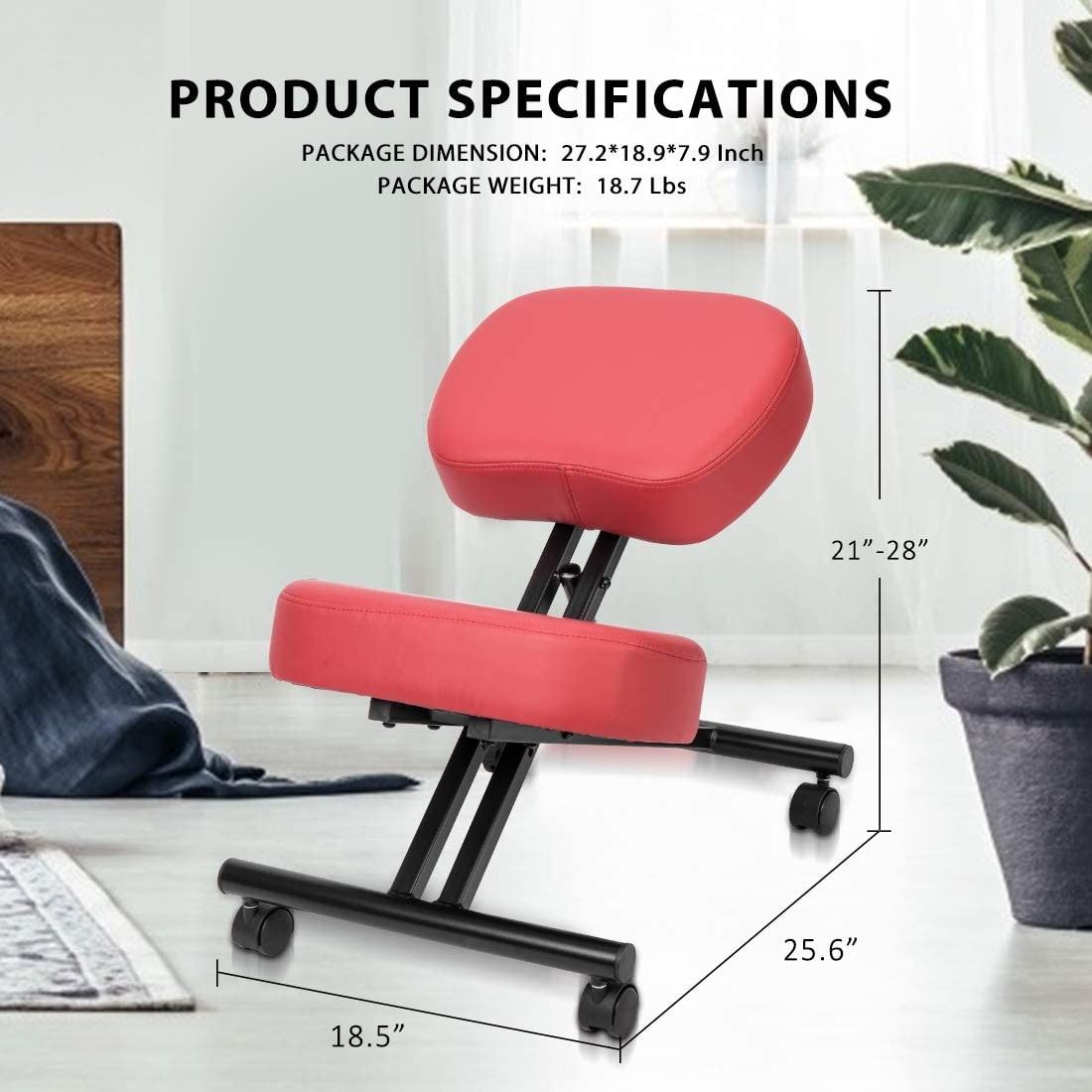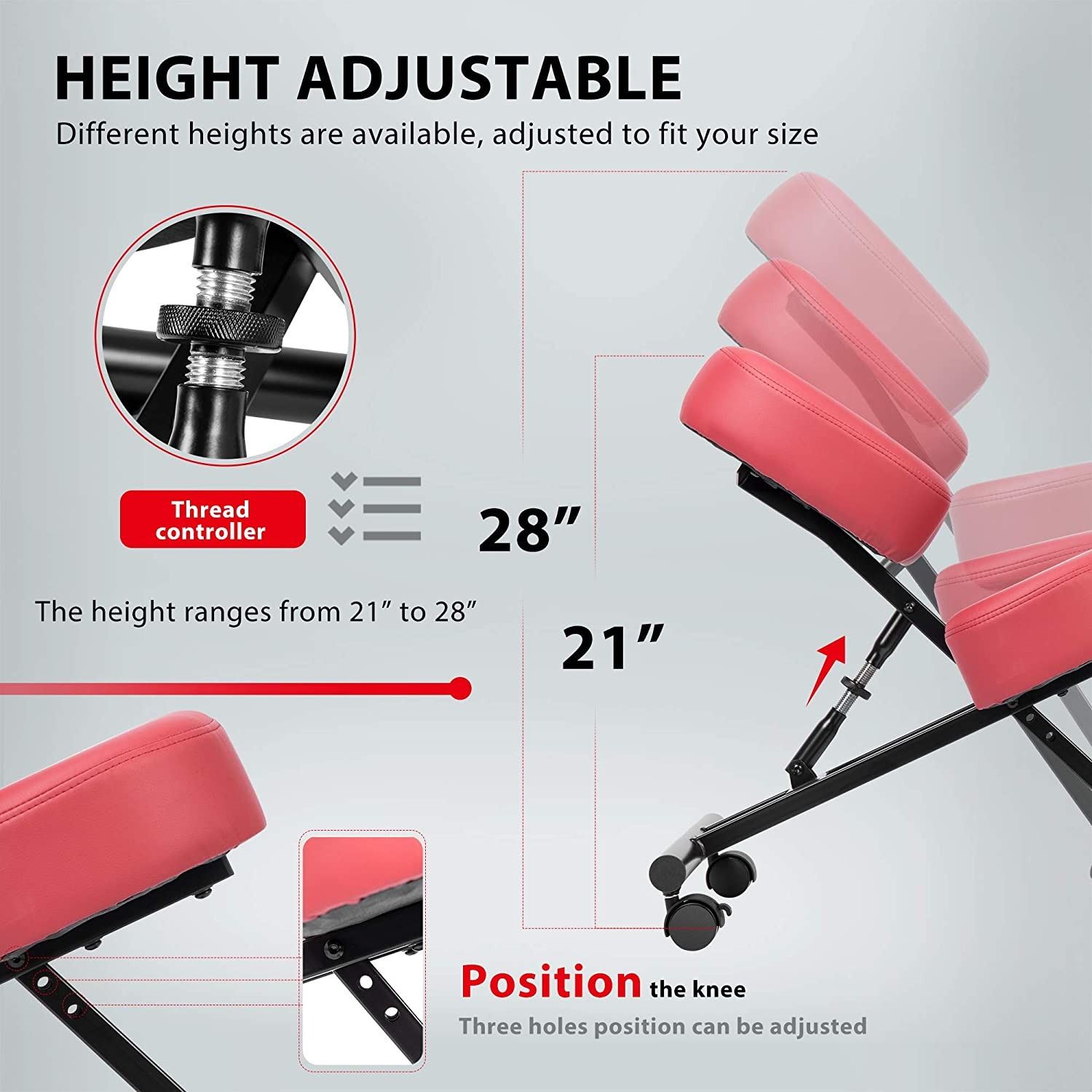 WITH ADJUSTABLE STOOL, THICK COMFORT FOAM, SMOOTH GLIDING CASTER WHEELS FOR HOME OR OFFICE, RED, ALL PARTS CONFIRMED, AMZ SES
