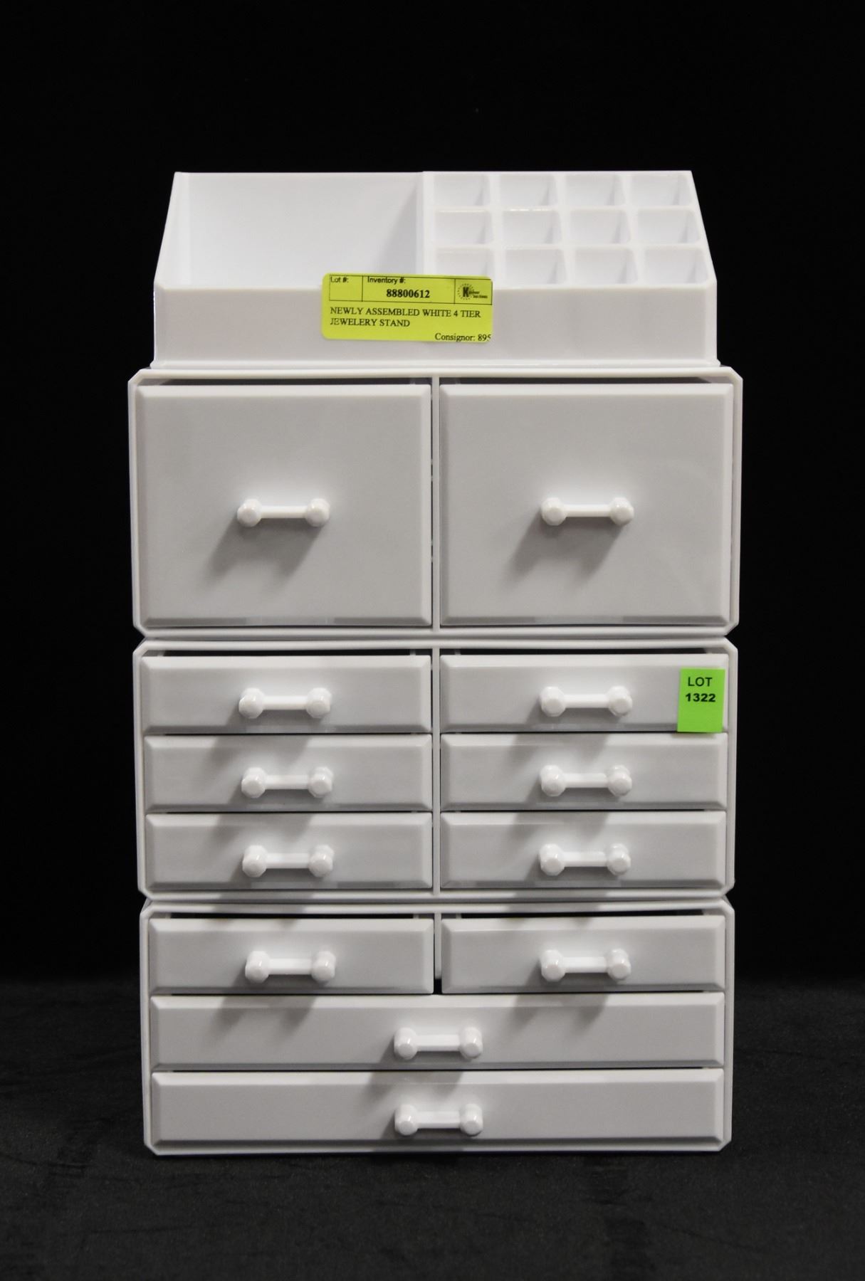 PLASTIC, BLACK TRAY LINERS INCLUDE, MODIFIABLE SET UP, 4 REMOVABLE TIERS, CAN BE USED FOR MAKEUP OR OTHER STORAGE APPLICATIONS