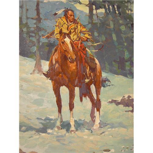 Known for his western scene paintings, especially with horses and cowboys, Newman Myrah has his studio in Oregon and was born in Saskatchewan, Canada. He said: "...my interest in the horse and what the animal meant to the West determines the subject matter of many of my paintings."