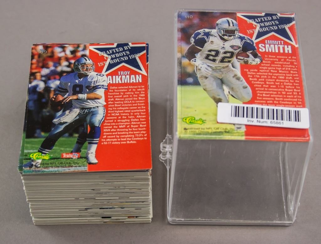 Bundle of NFL collectible sports cards. From 1995. With plastic box. 9 x 6 cm. 301 grams.