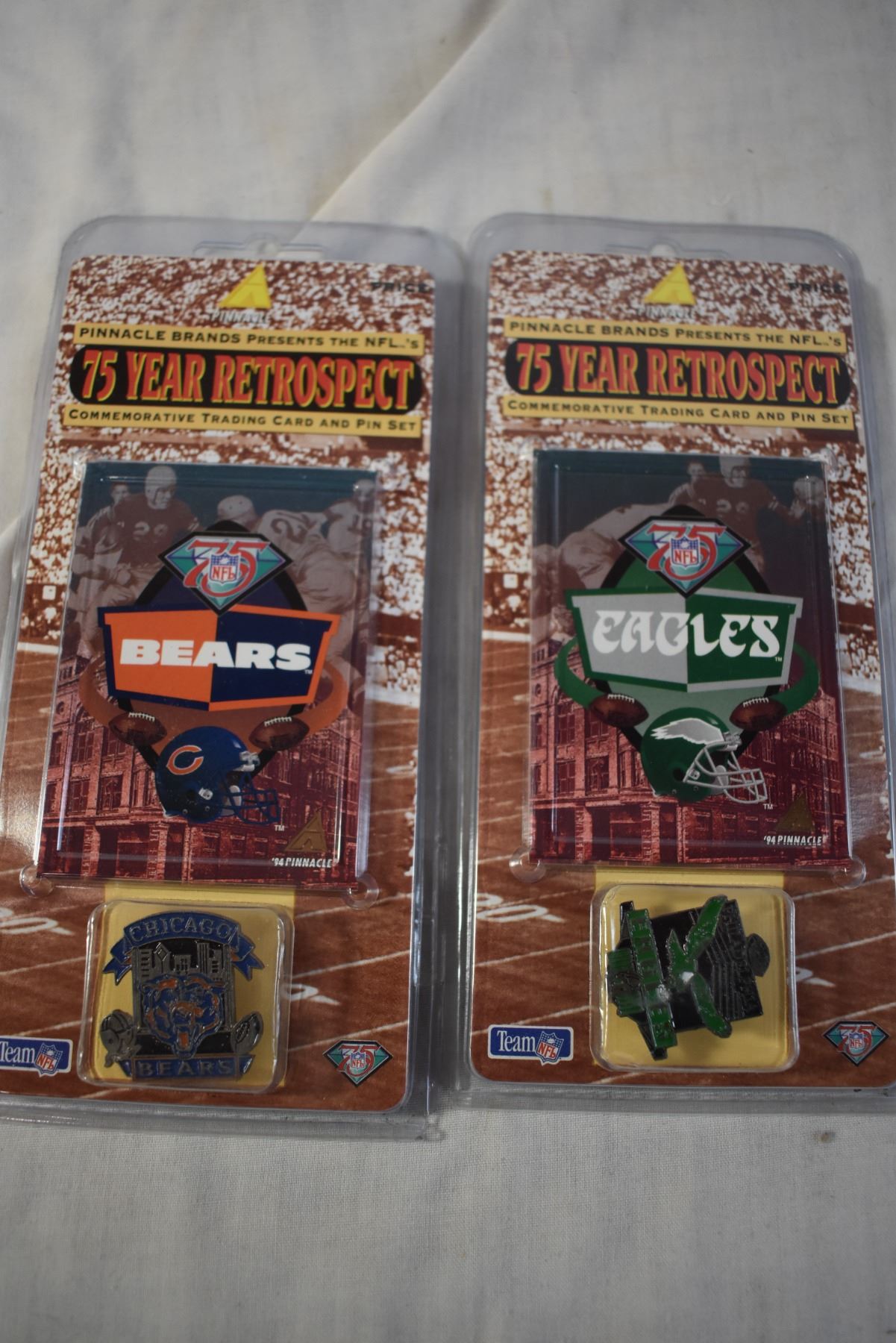 NFL 75 Year Retrospective Trading Card and Pin Sets