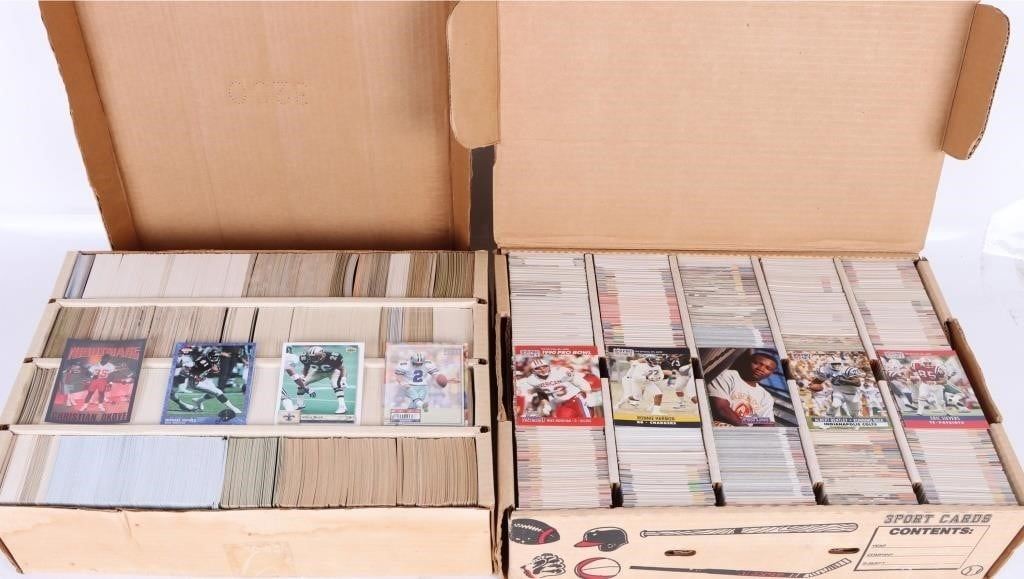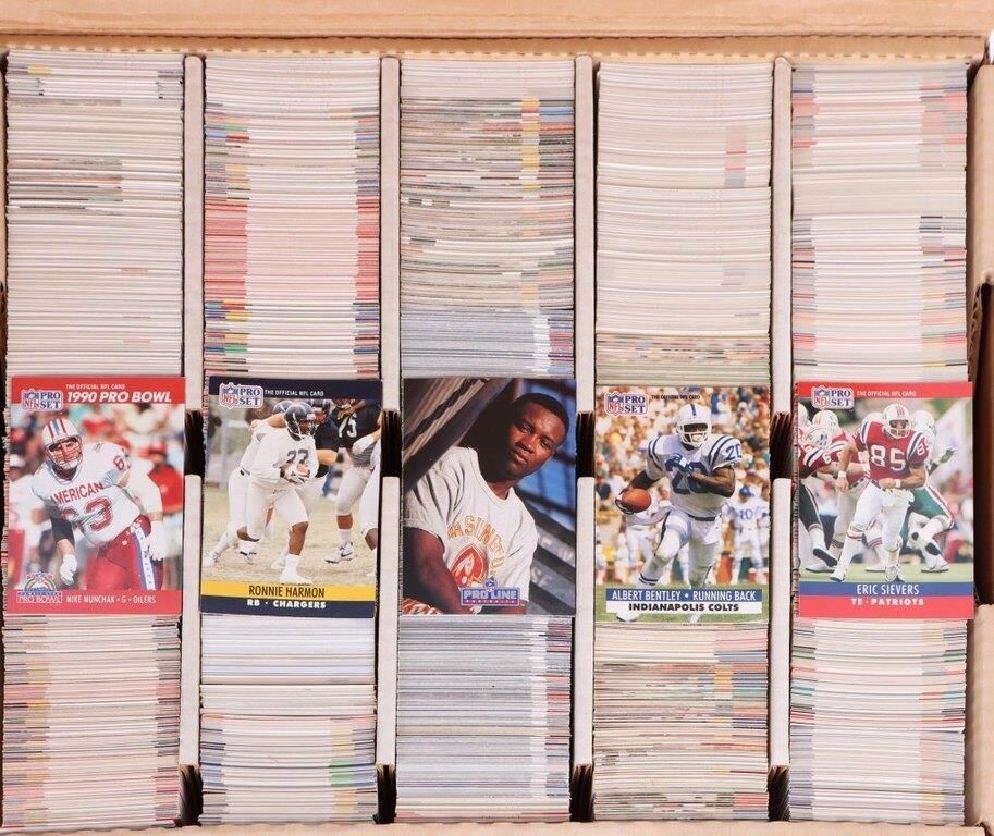NFL Football assorted card sets to include complete sets of 1990 Pro-set, 1991 Pro-line, and 1991 Pro-set football cards. Other incomplete sets to include Pinnacle 1994 and more. Total cards are around 6500.