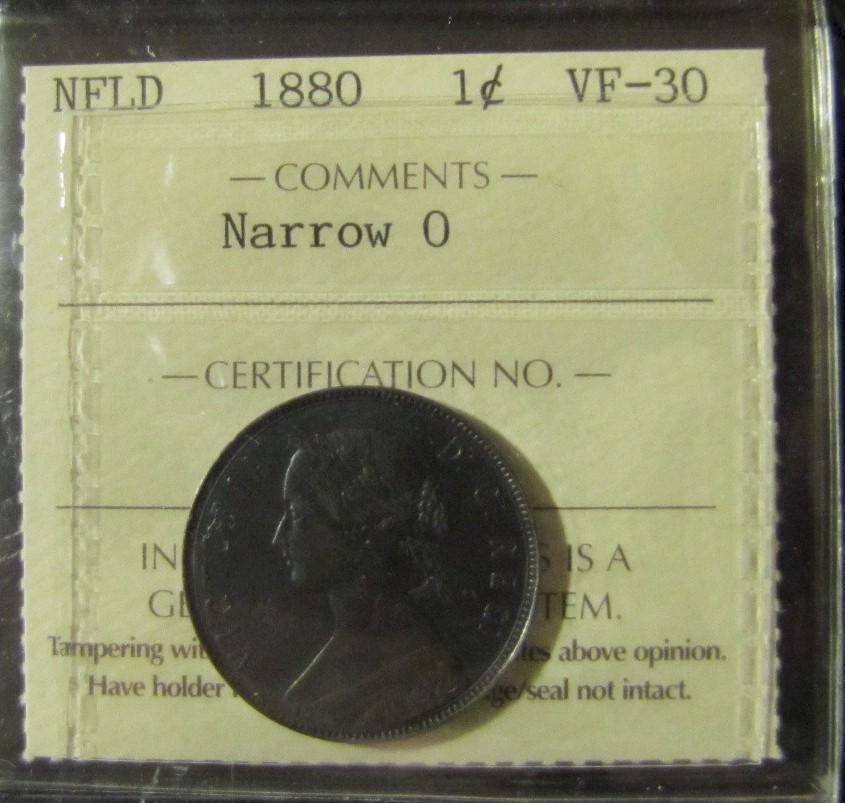 NFLD 1¢ 1880 Nar 0 ICCS VF30.